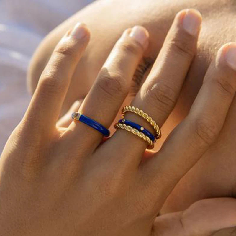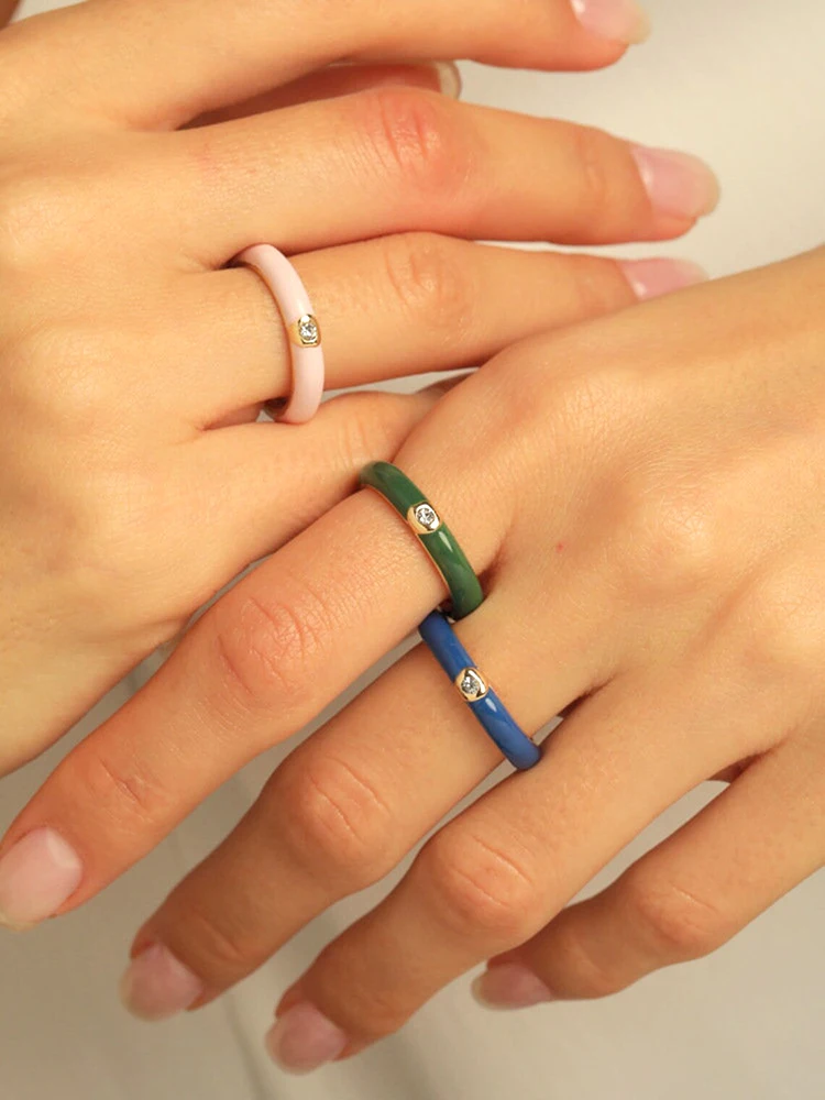 Anillo de esmalte fino de plata chapada en oro de 24 quilates, blanco, rosa, rojo, verde, polvo púrpura para mujer, joyería fina de moda, joyería pequeña de boda