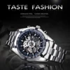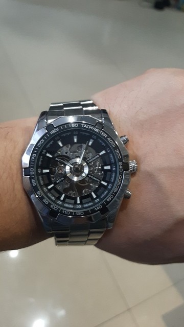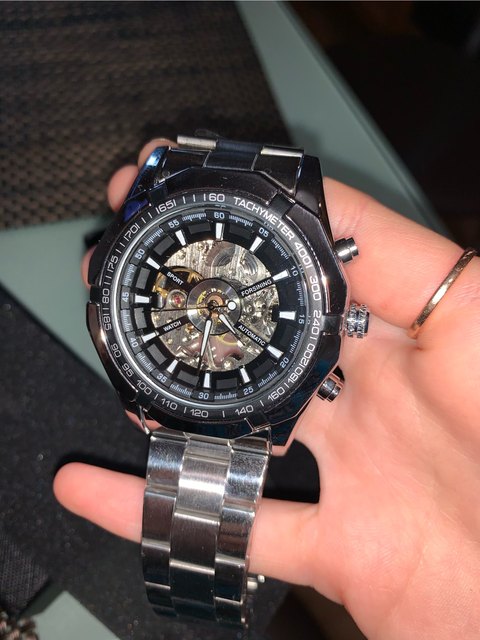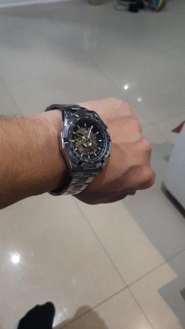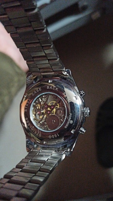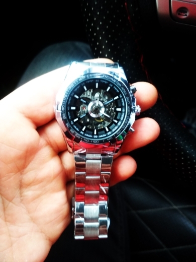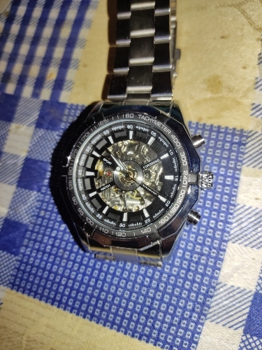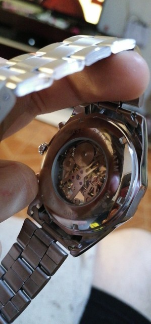 Este es uno de los mejores relojes mecánicos bobinados a mano. La apariencia del reloj es muy sobresaliente. Con una esfera de esqueleto, puedo ver el resorte girando cuando lo estoy enrollando y también ver los columpios de la rueda de equilibrio de ida y vuelta en cualquier momento. A pesar de que hay dos botones no pressibles, pero está bien usarlos como decoración. Otro punto es la pulsera. Es muy fresco y parece que está hecho de cerámica. Además, el equipo de vendedor de esta tienda es muy responsable. Si tiene algún problema con su reloj, solo póngase en contacto con ellos. Siempre hay apoyo para ti.