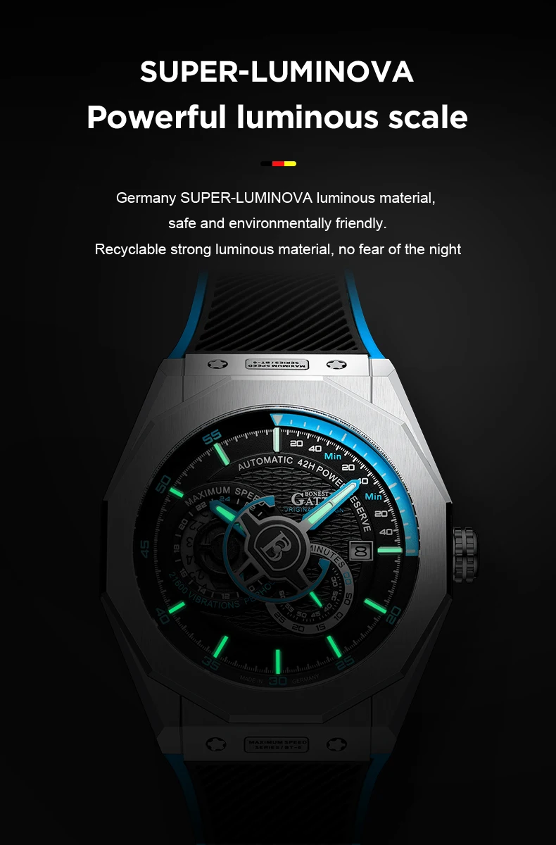Reloj mecánico automático de primera marca para hombre, zafiro, manos luminosas para hombre, relojes de pulsera deportivos a prueba de agua de 50M, Relogio Masculino