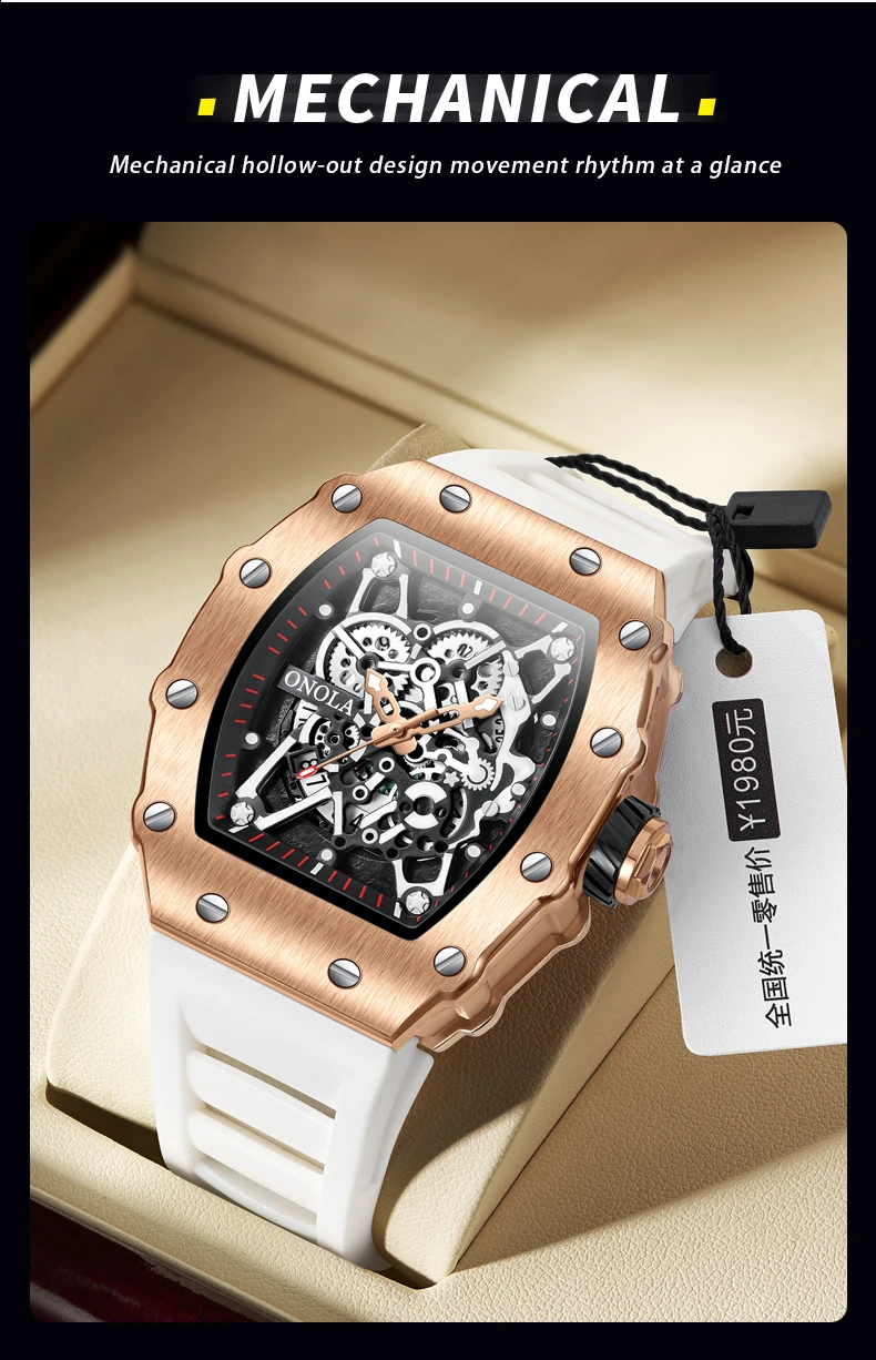 ONOLA-Reloj de pulsera deportivo para hombre, cronógrafo de cuarzo, resistente al agua, con correa de silicona roja