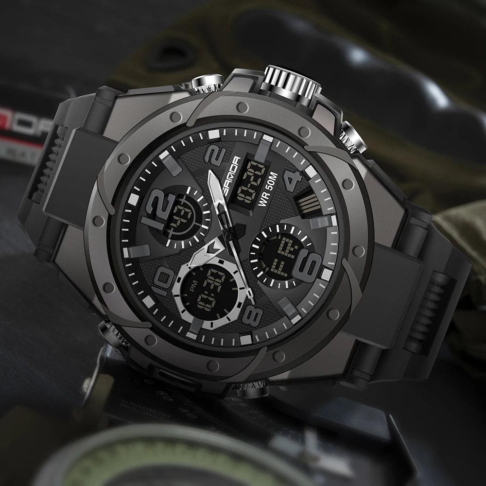 SANDA-Pulsera deportiva para hombres, reloj de lujo masculino resistente al agua, de doble pantalla y estilo militar