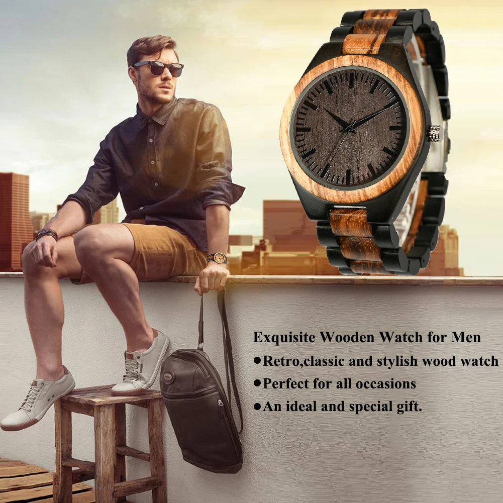 Estos relojes de madera de ébano están hechos a mano con madera natural. No hay dos relojes iguales y cada uno es único. Puede haber una ligera variación en el tono de madera (más claro o más oscuro) de las fotos.