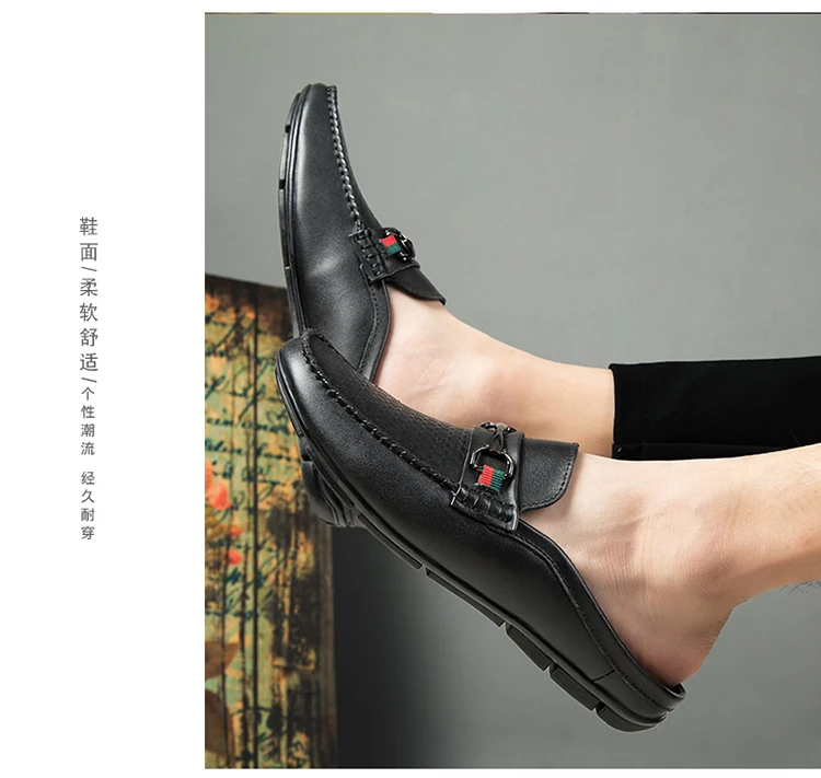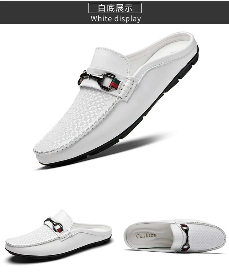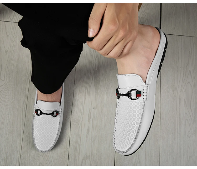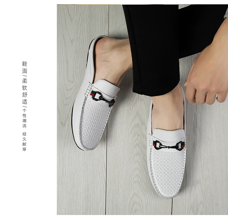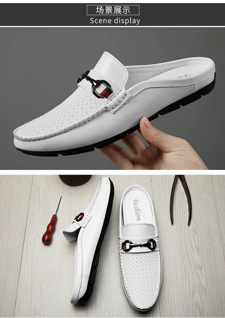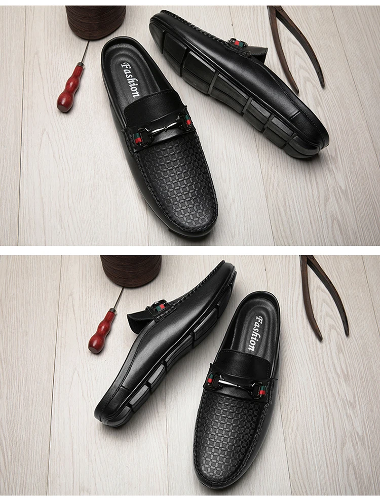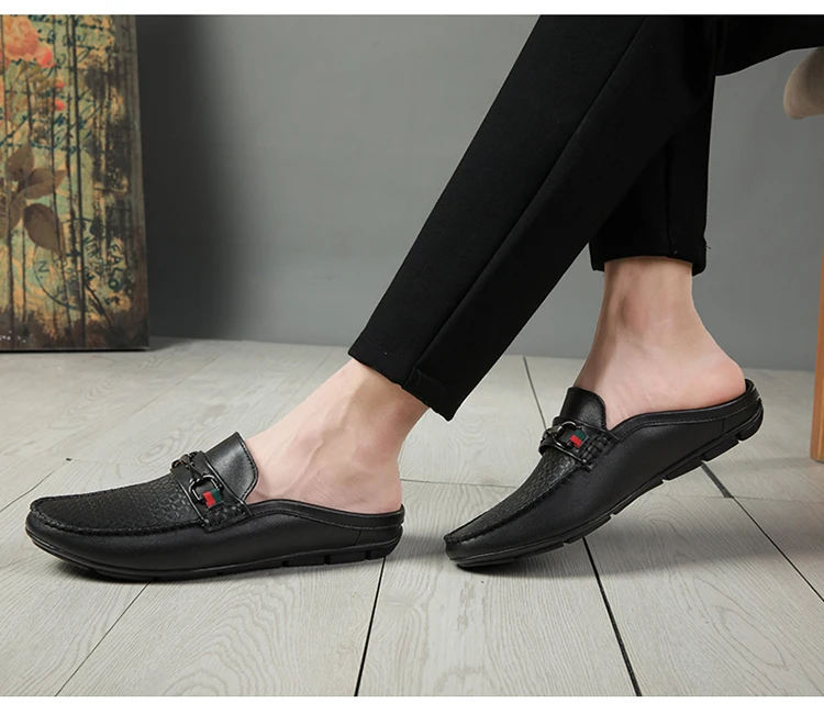 Hombre nueva moda primera capa de cuero medio zapatos casuales mocasín sin espalda Hombre medio Calzado Hombre espalda abierta cuero cómodo motassins