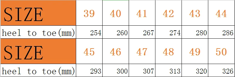 1. Las medidas son del tamaño máximo, por favor permita un error de aproximadamente ± 5MM.Compare la tabla de tallas con la longitud de sus pies cuidadosamente antes de realizar el pedido.