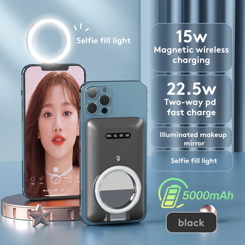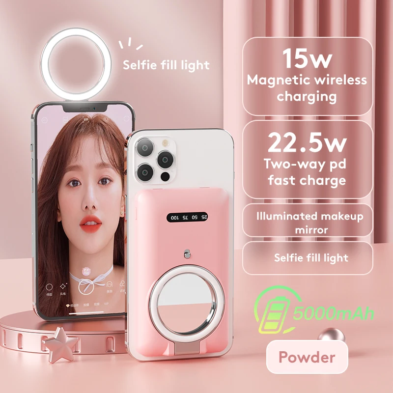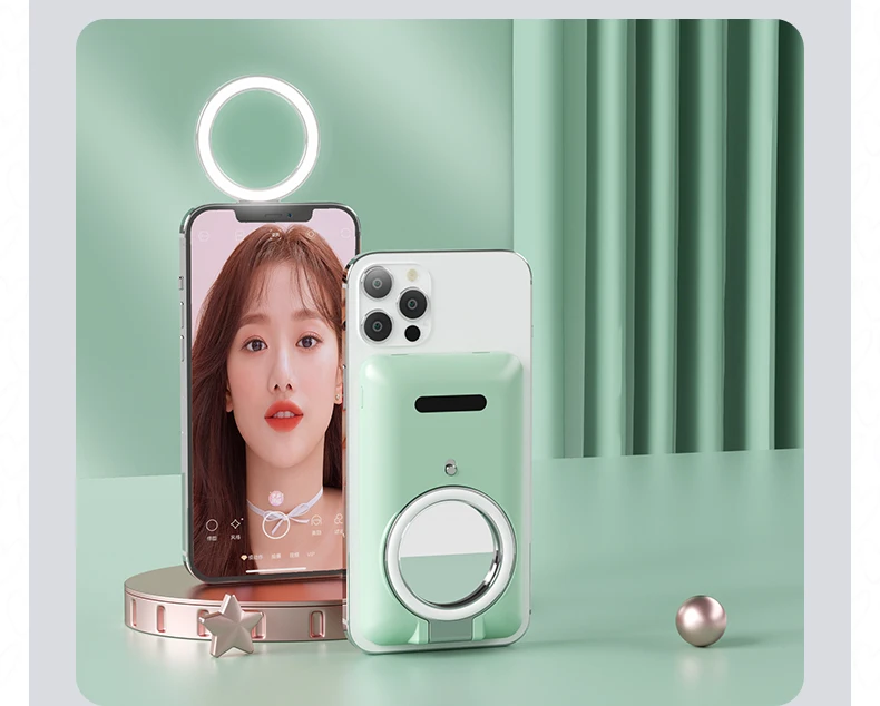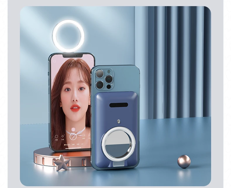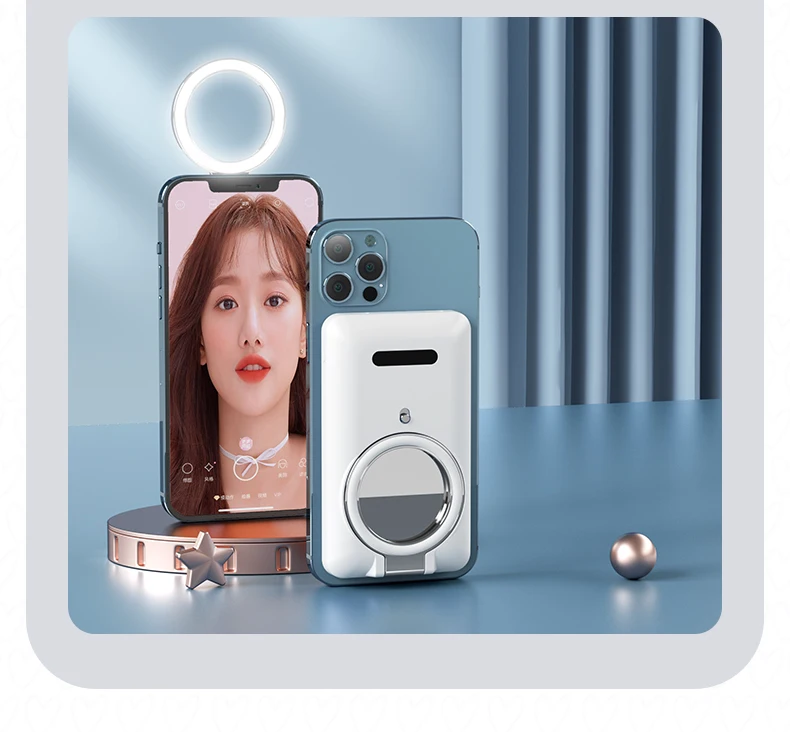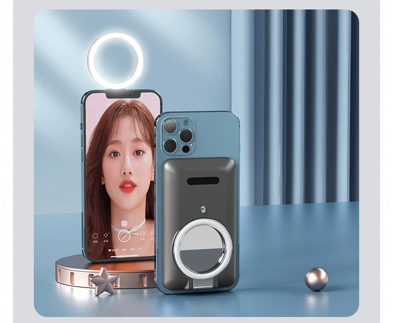 Nuevo 2021 auto-temporizador Luz de relleno banco de energía magnético 15W carga rápida inalámbrica para iphone 12 13 Pro Max 12pro mini estuche de carga