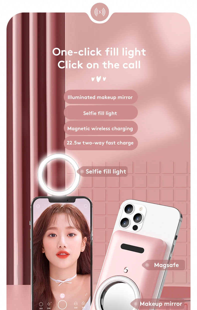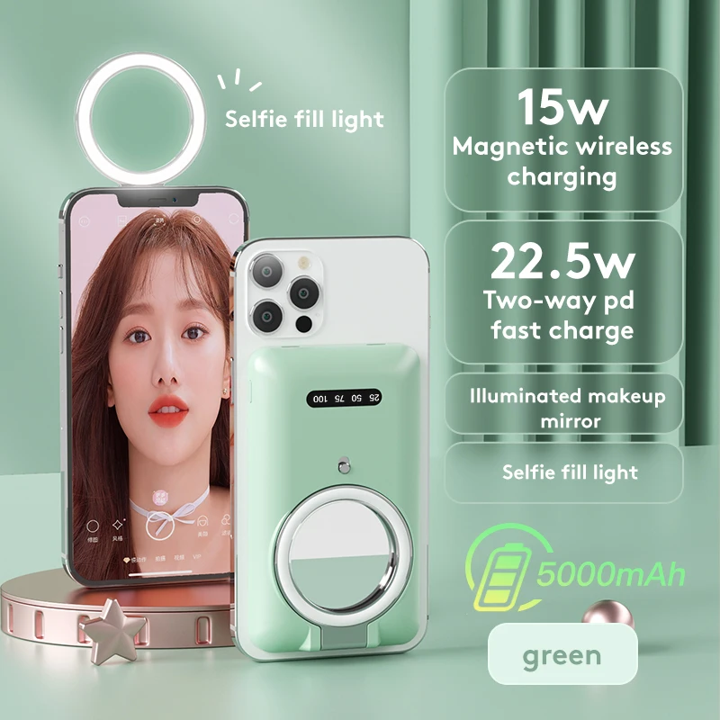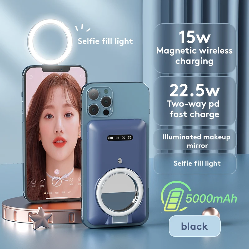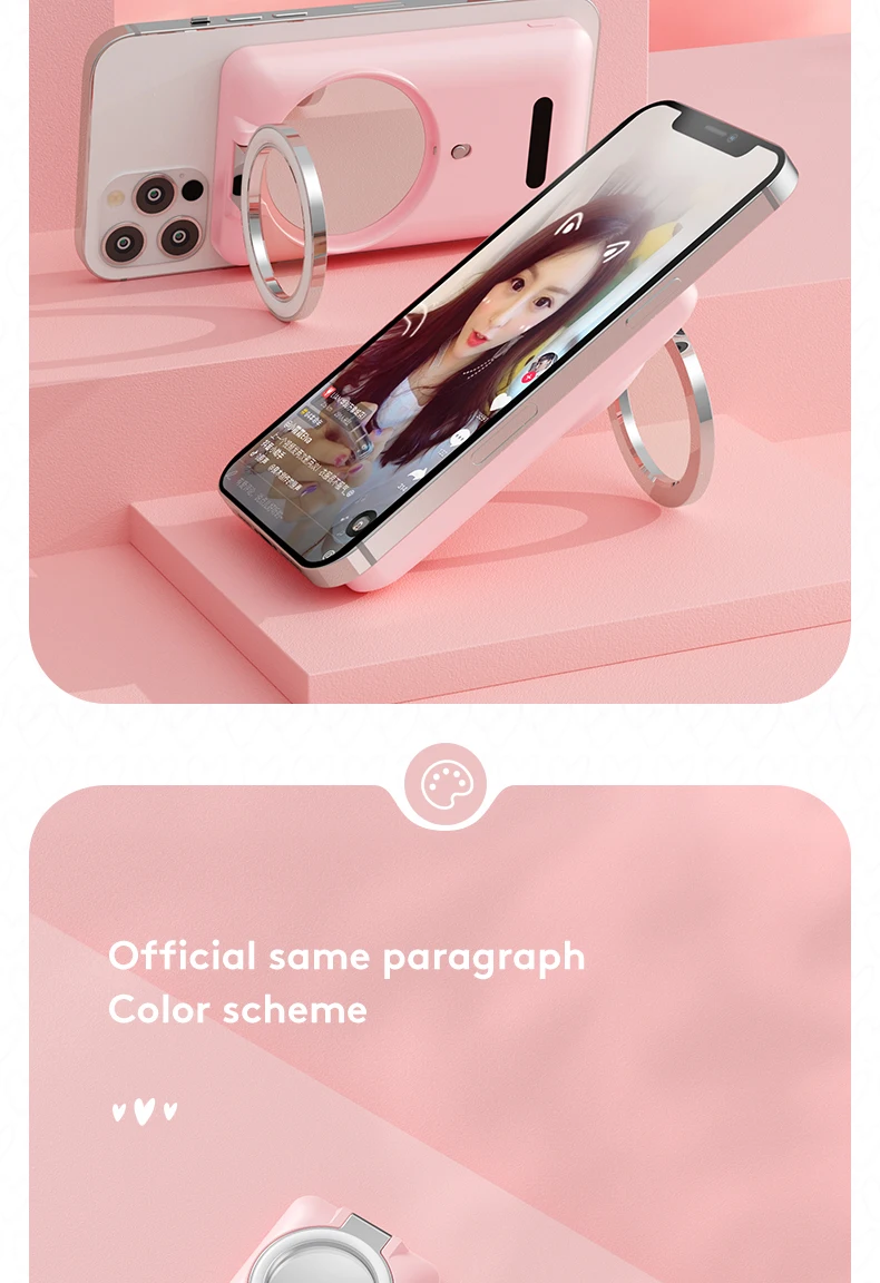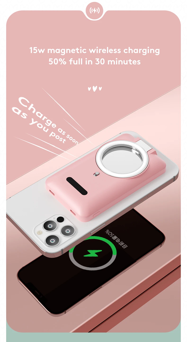 Nuevo 2021 auto-temporizador Luz de relleno banco de energía magnético 15W carga rápida inalámbrica para iphone 12 13 Pro Max 12pro mini estuche de carga