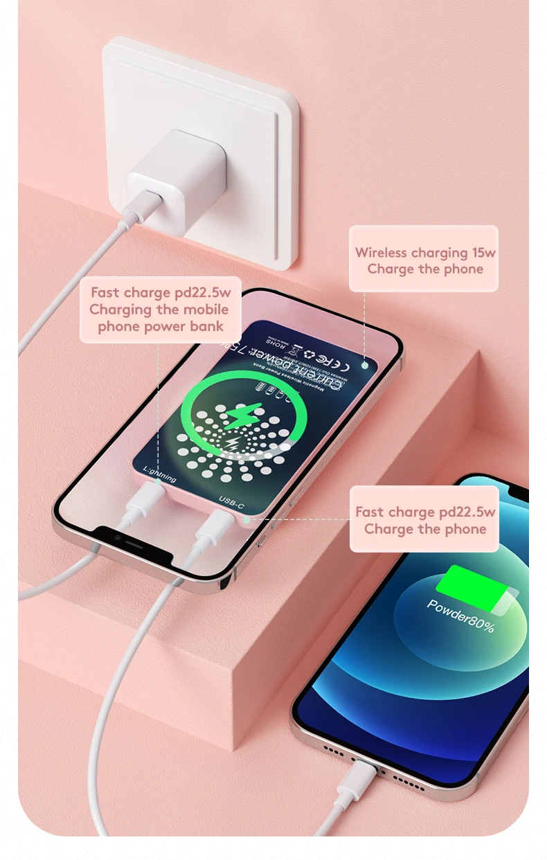 1. Banco de potencia de absorción magnética pd22,5w + carga inalámbrica de 15W