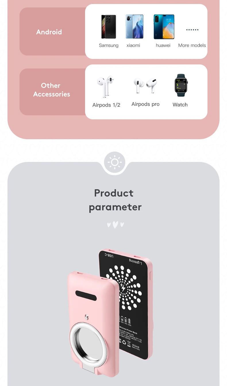[Parámetros del producto]: Banco de energía pd22,5w + cargador inalámbrico de 15W
