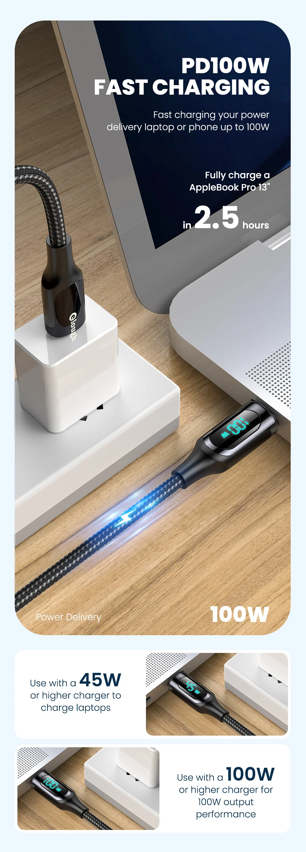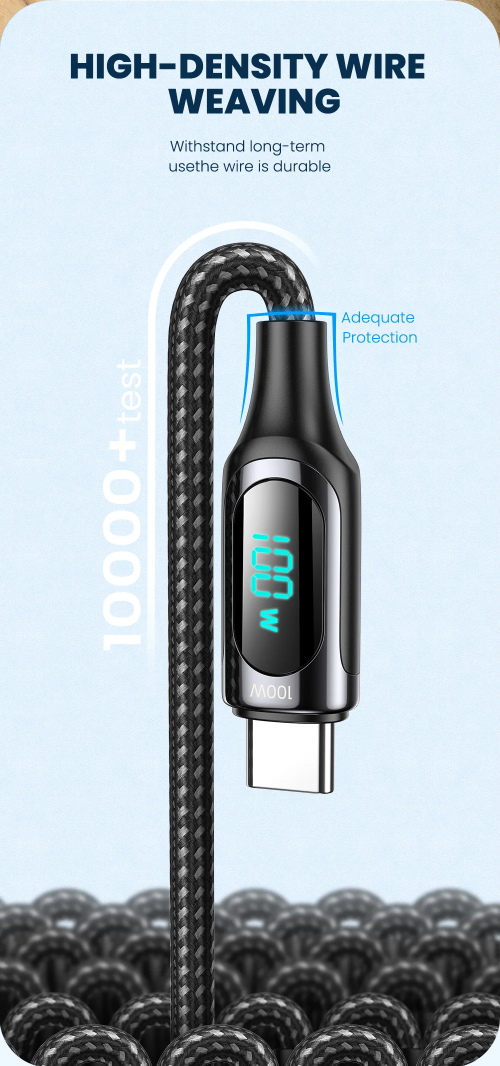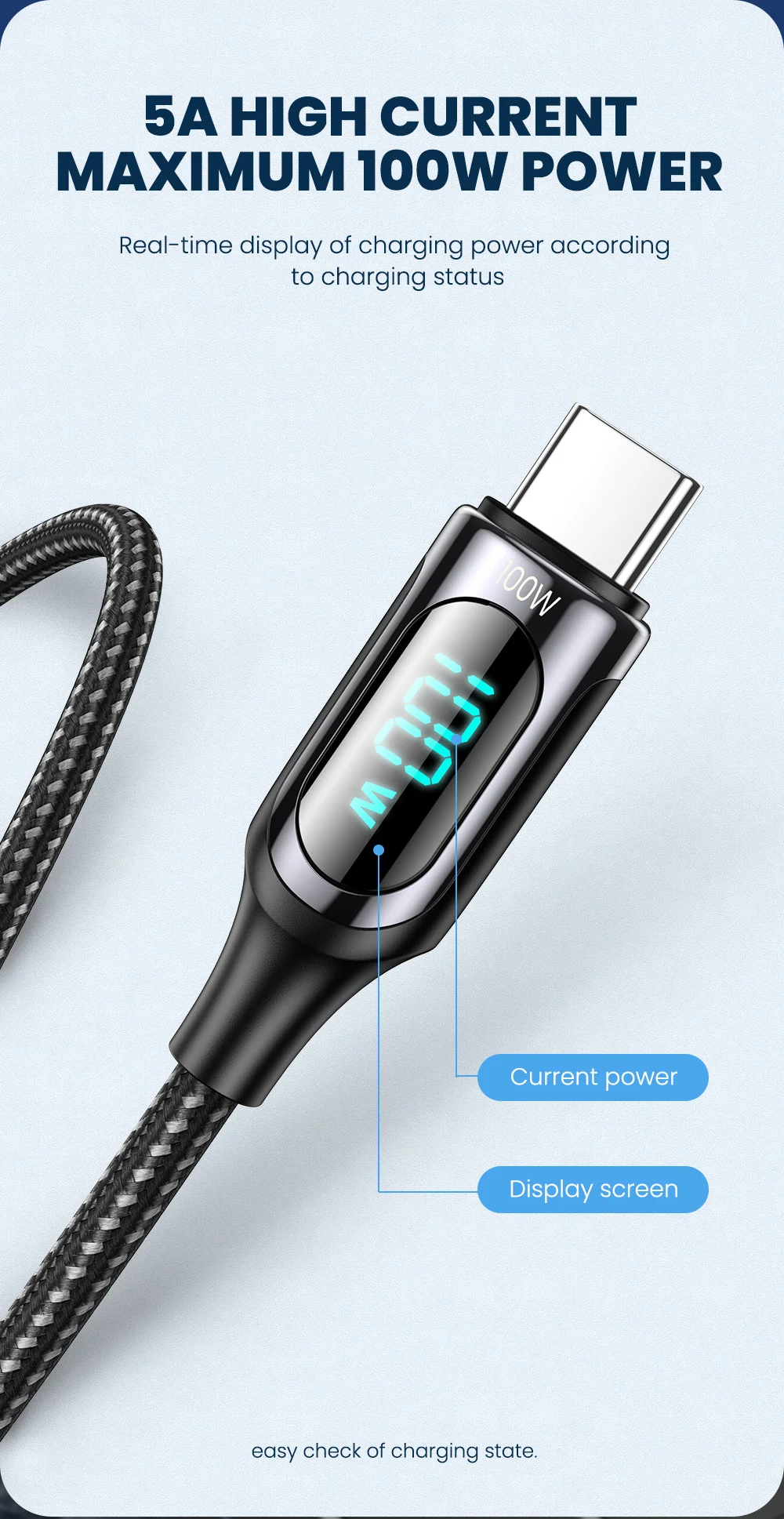 Cable PD con pantalla LED, potencia de carga en tiempo Real
