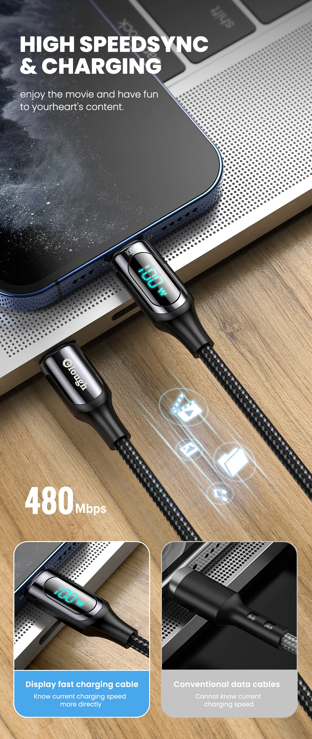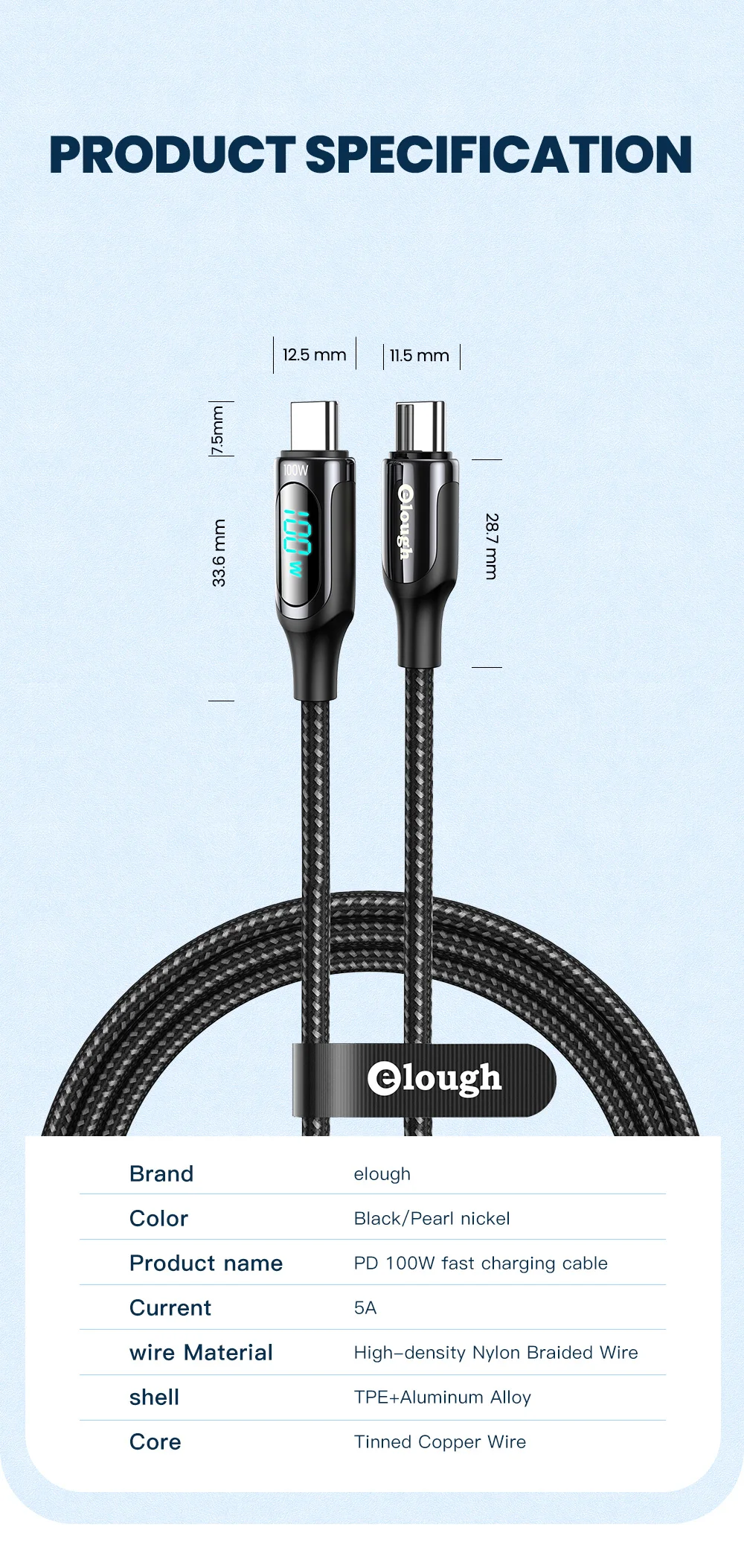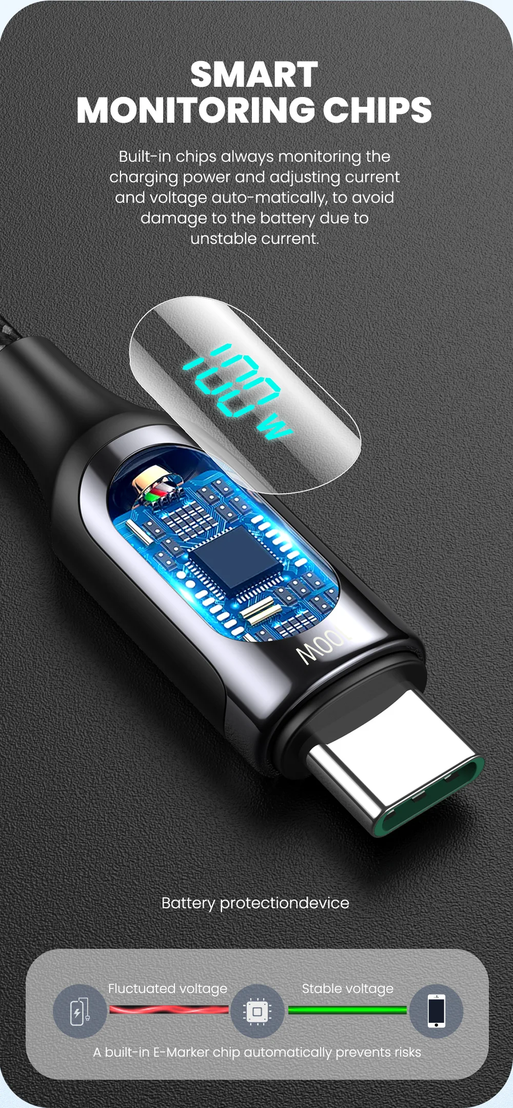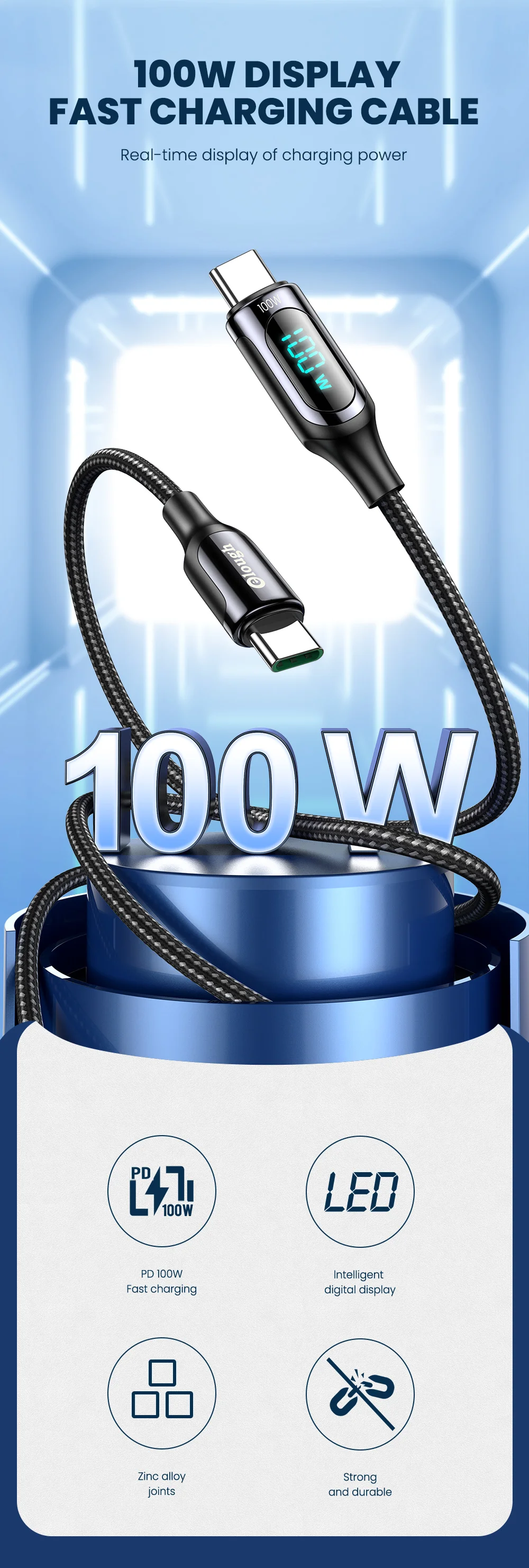 Cable PD con pantalla LED, potencia de carga en tiempo Real