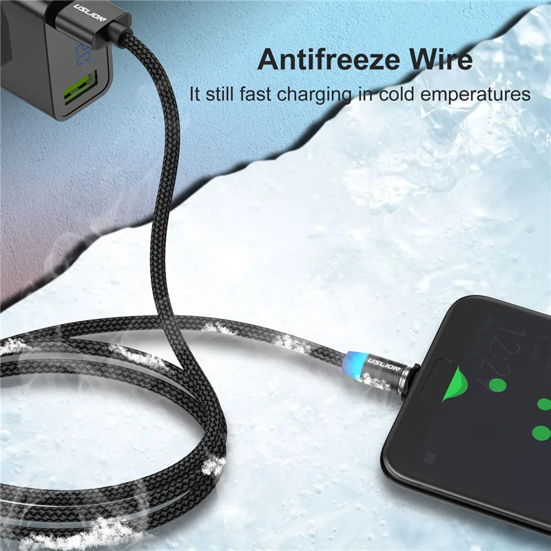 USLION LED Cable USB magnético de carga rápida tipo C Cable magnético cargador de datos Cable Micro USB Cable de teléfono móvil Cable USB