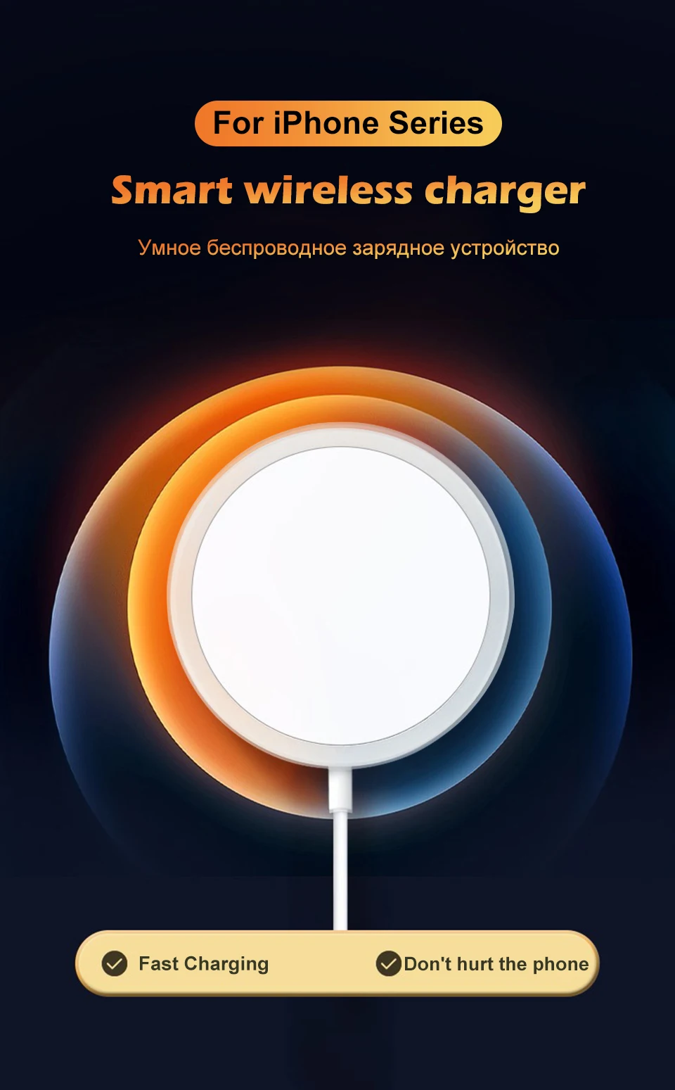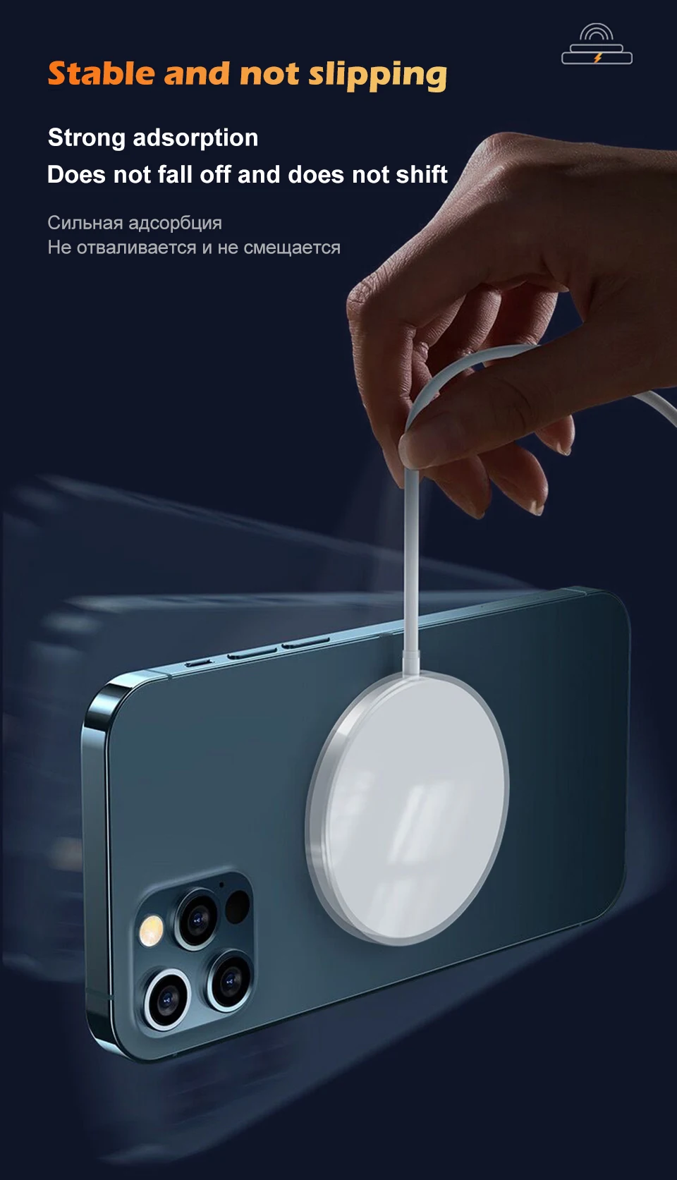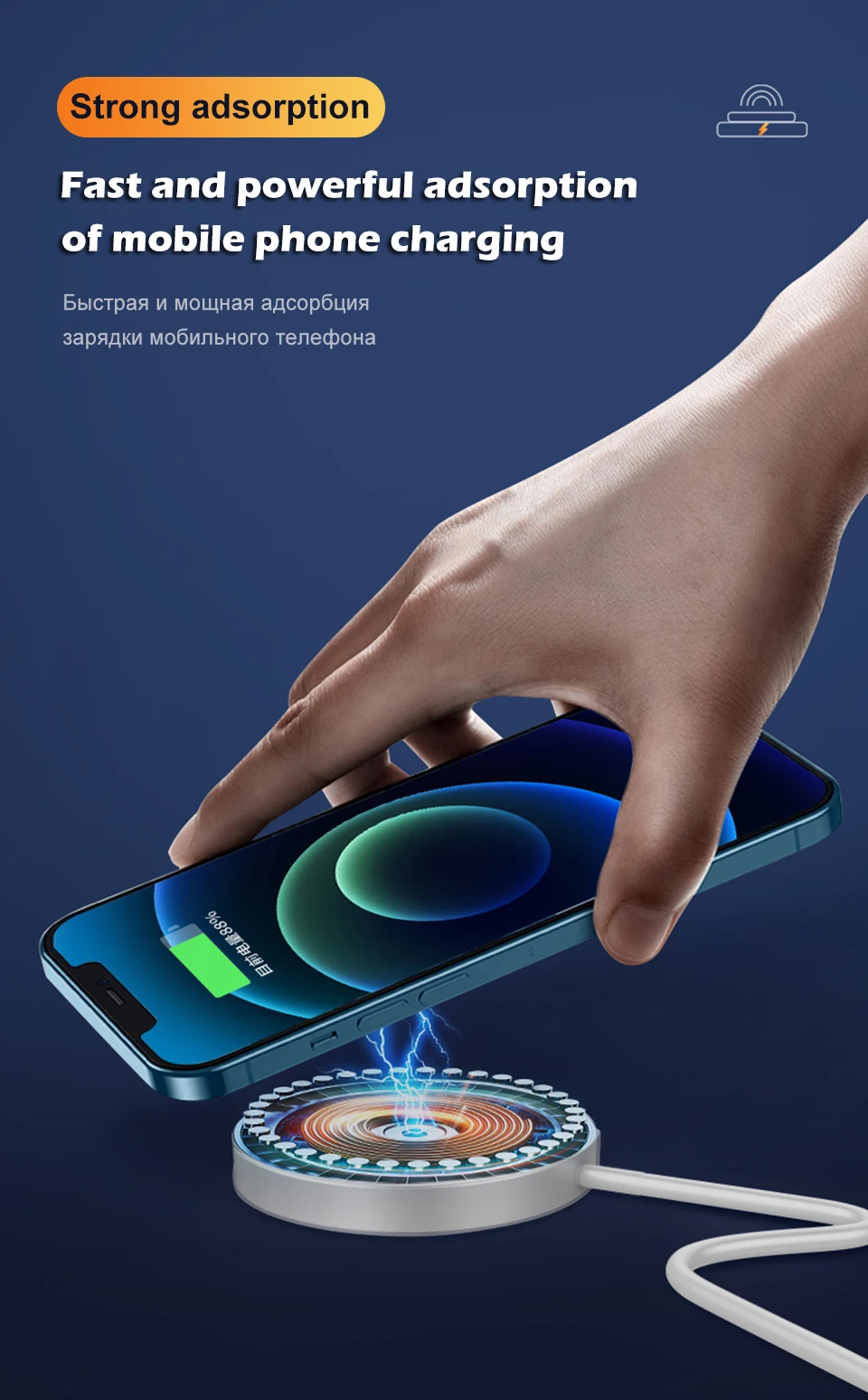 Los cargadores magnéticos hacen que la carga inalámbrica sea rápida y conveniente. Los imanes se pueden alinear con precisión con tu iPhone 11 12 13 Pro MAX mini XR X XS MAX 7 8 Plus, lo que puede aumentar en gran medida la velocidad de carga inalámbrica (hasta 15 vatios).