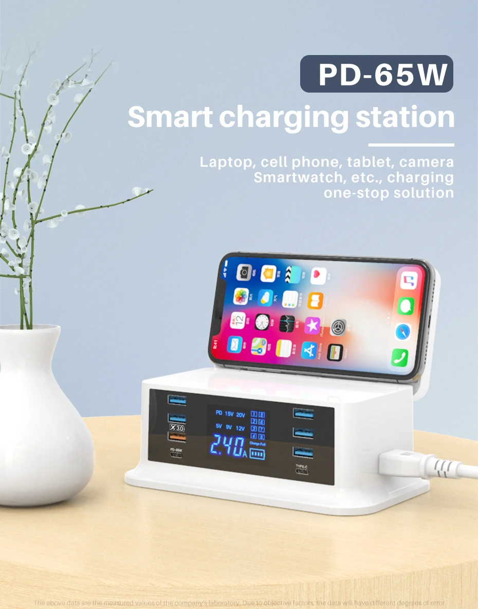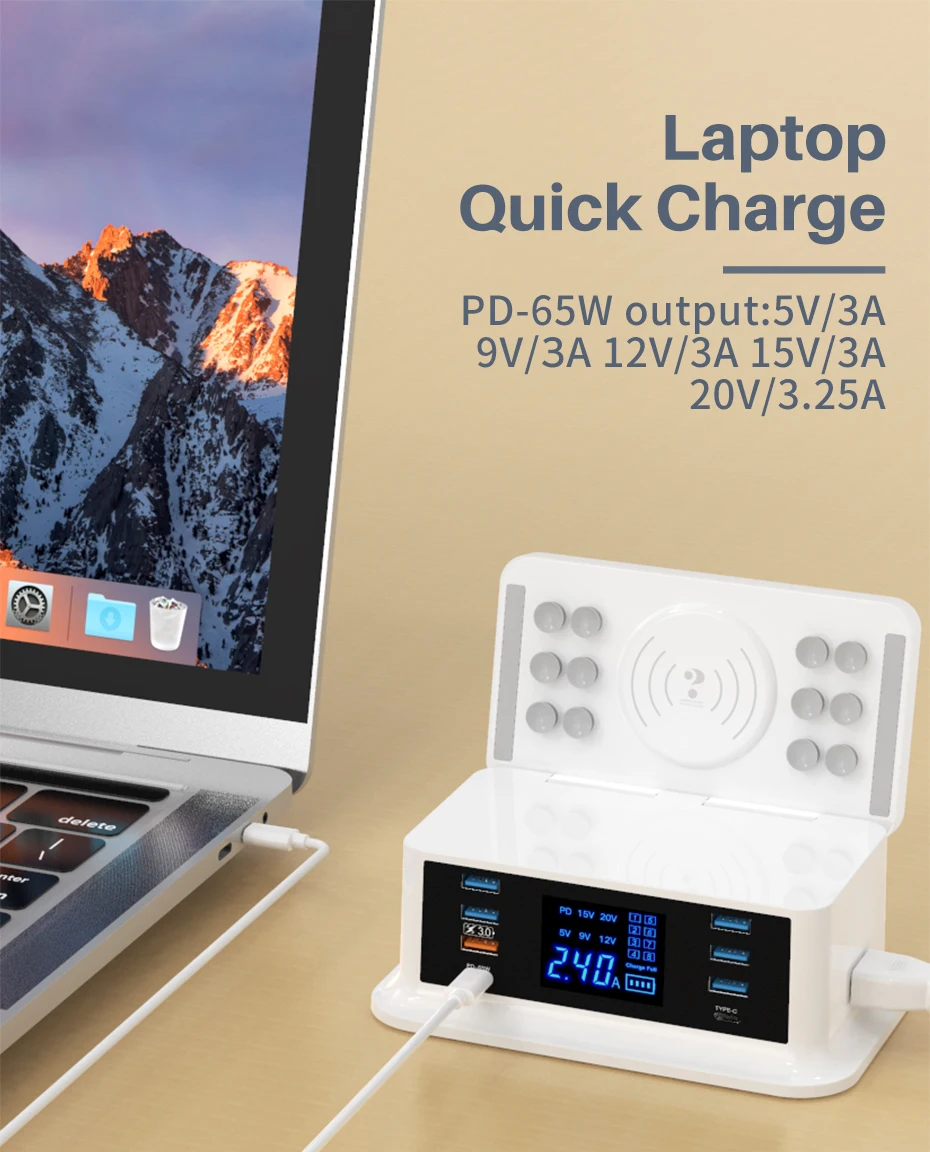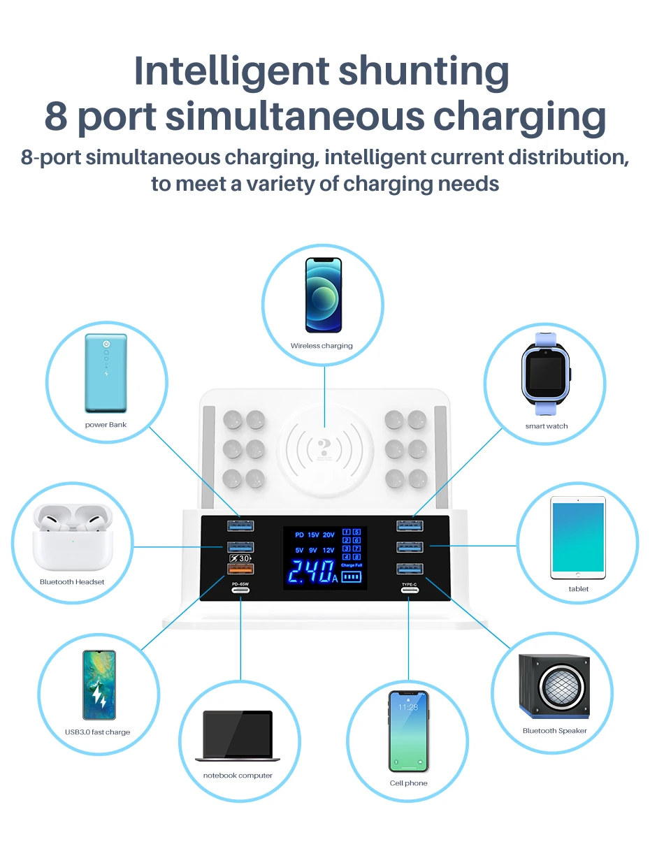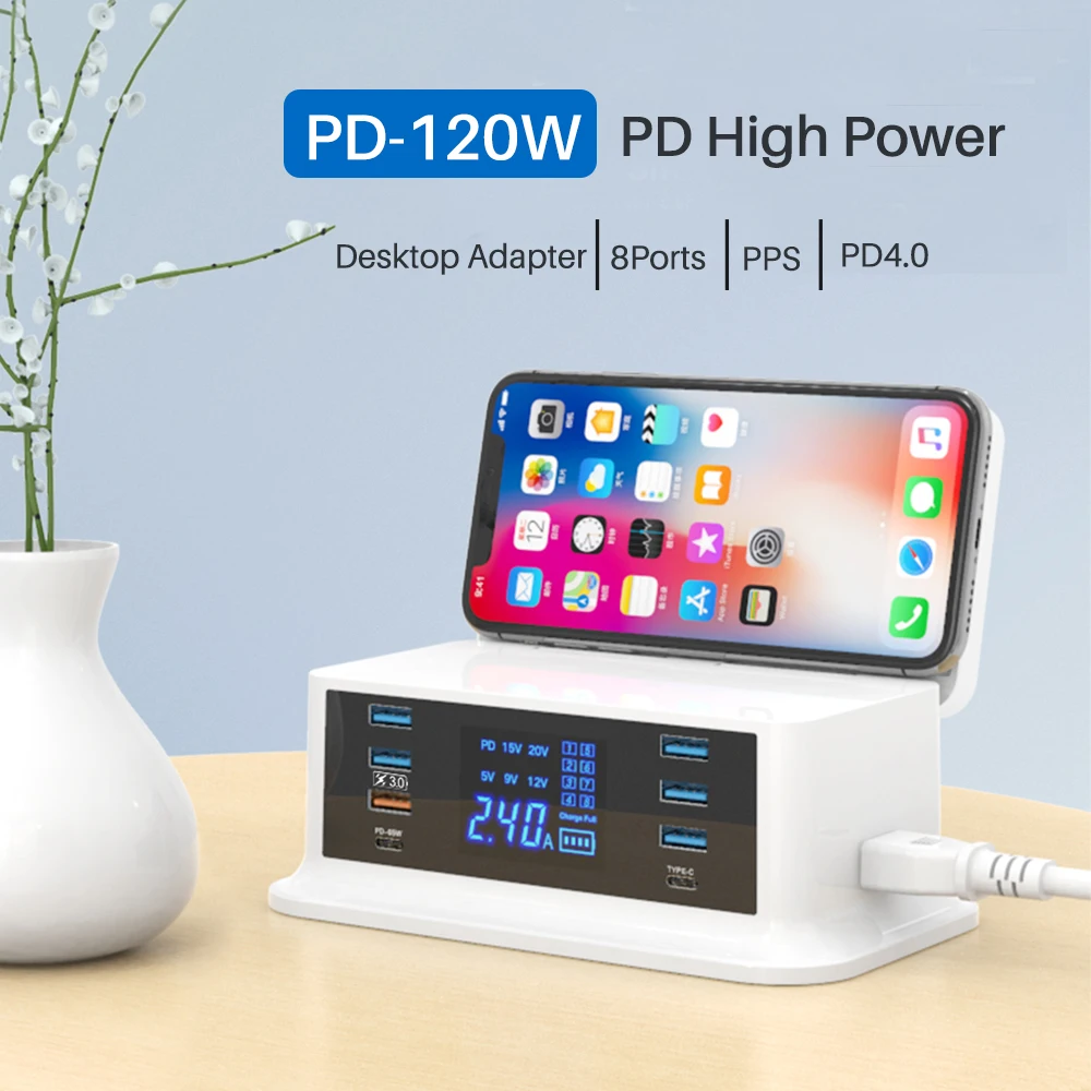 Cargador rápido PD120W tipo c QC3.0 carga rápida hub de 8 puertos para MacBook pro. IPhone Xiaomi Huawei dispositivo digital carga inalámbrica