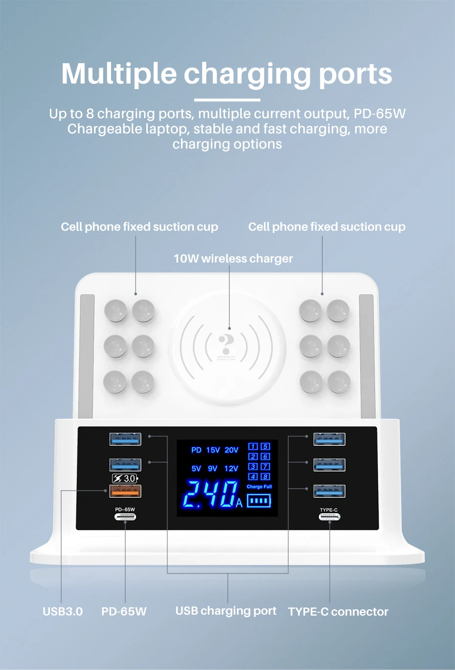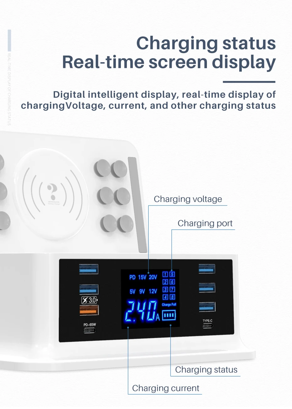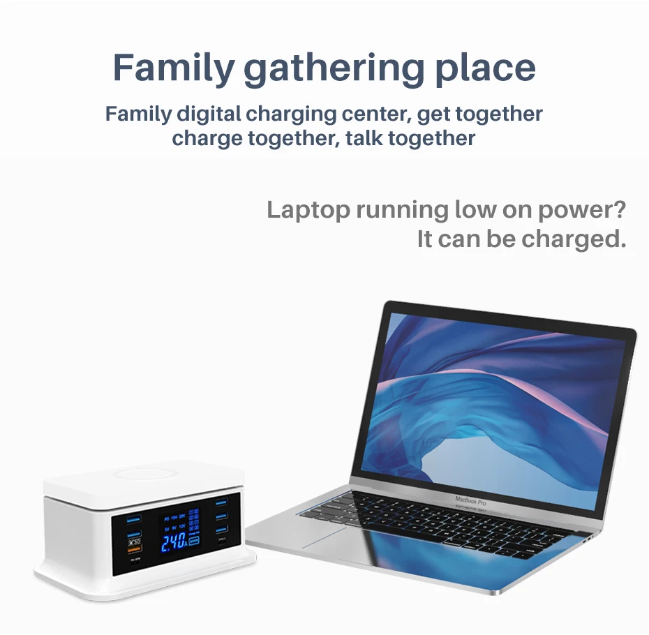 Cargador rápido PD120W tipo c QC3.0 carga rápida hub de 8 puertos para MacBook pro. IPhone Xiaomi Huawei dispositivo digital carga inalámbrica