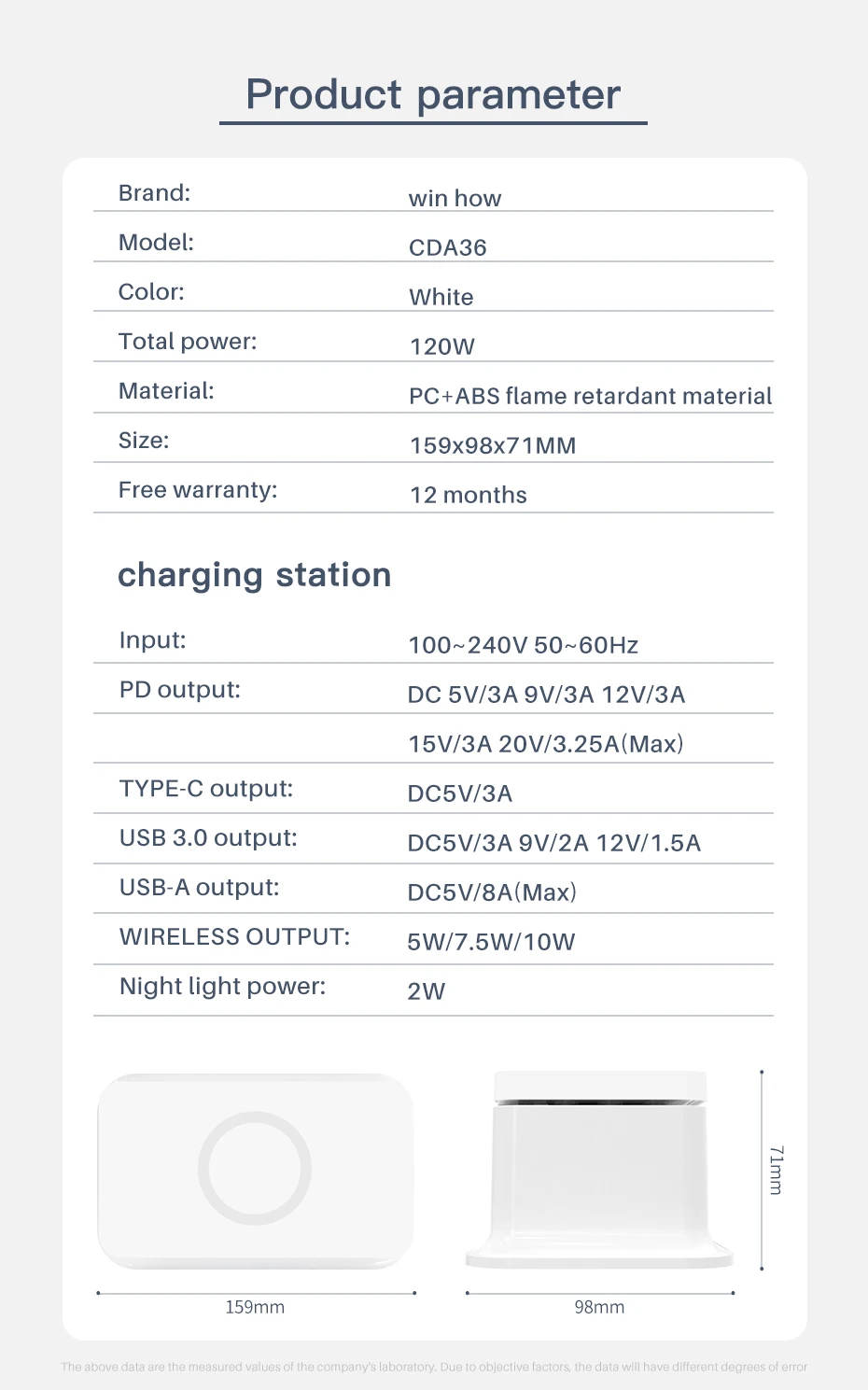 USB-A salida: DC5V/8A(Max)