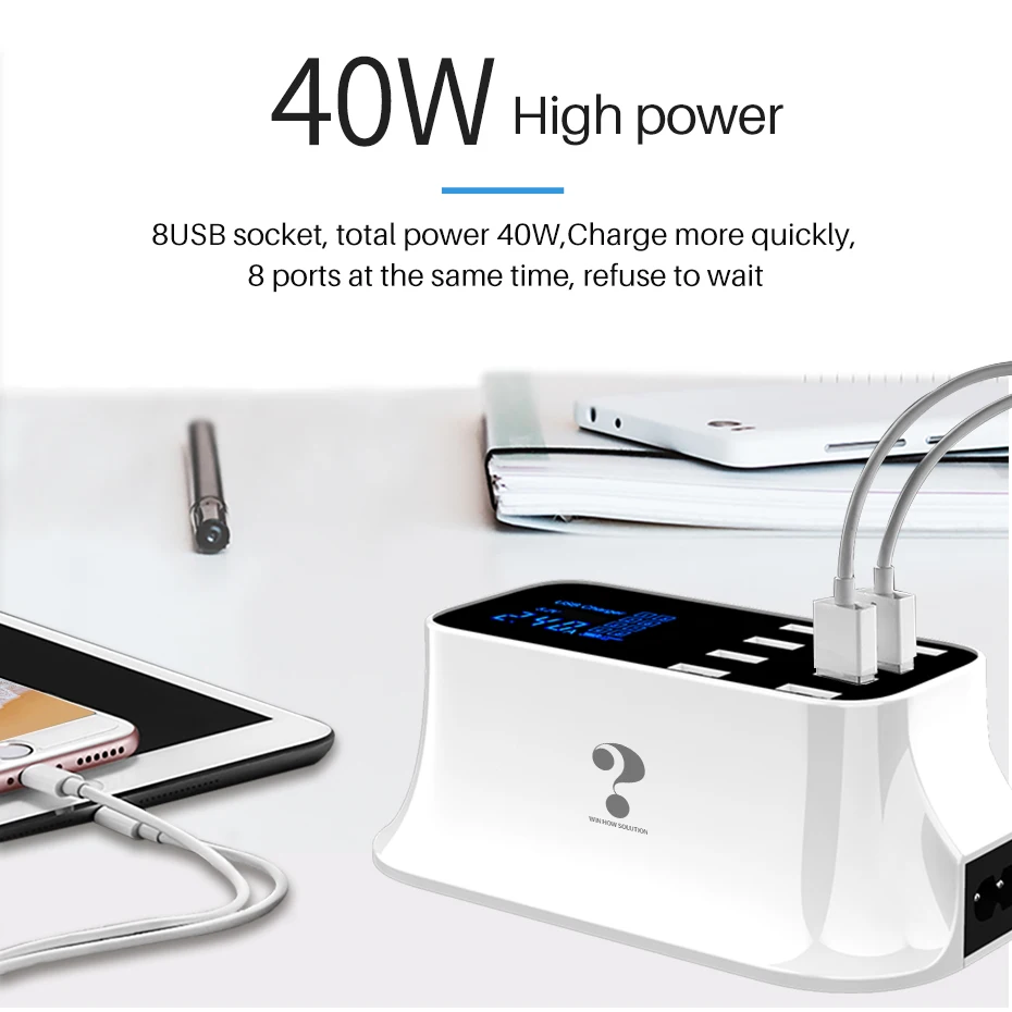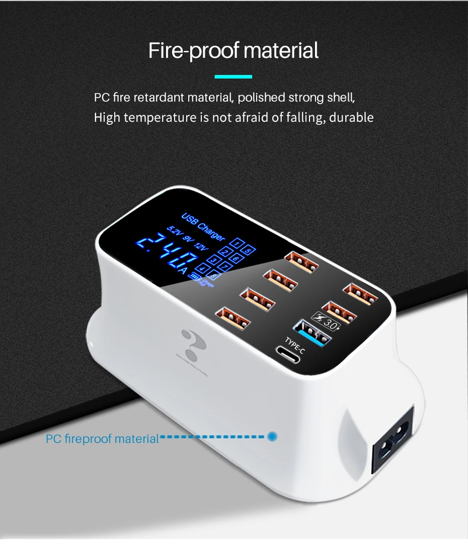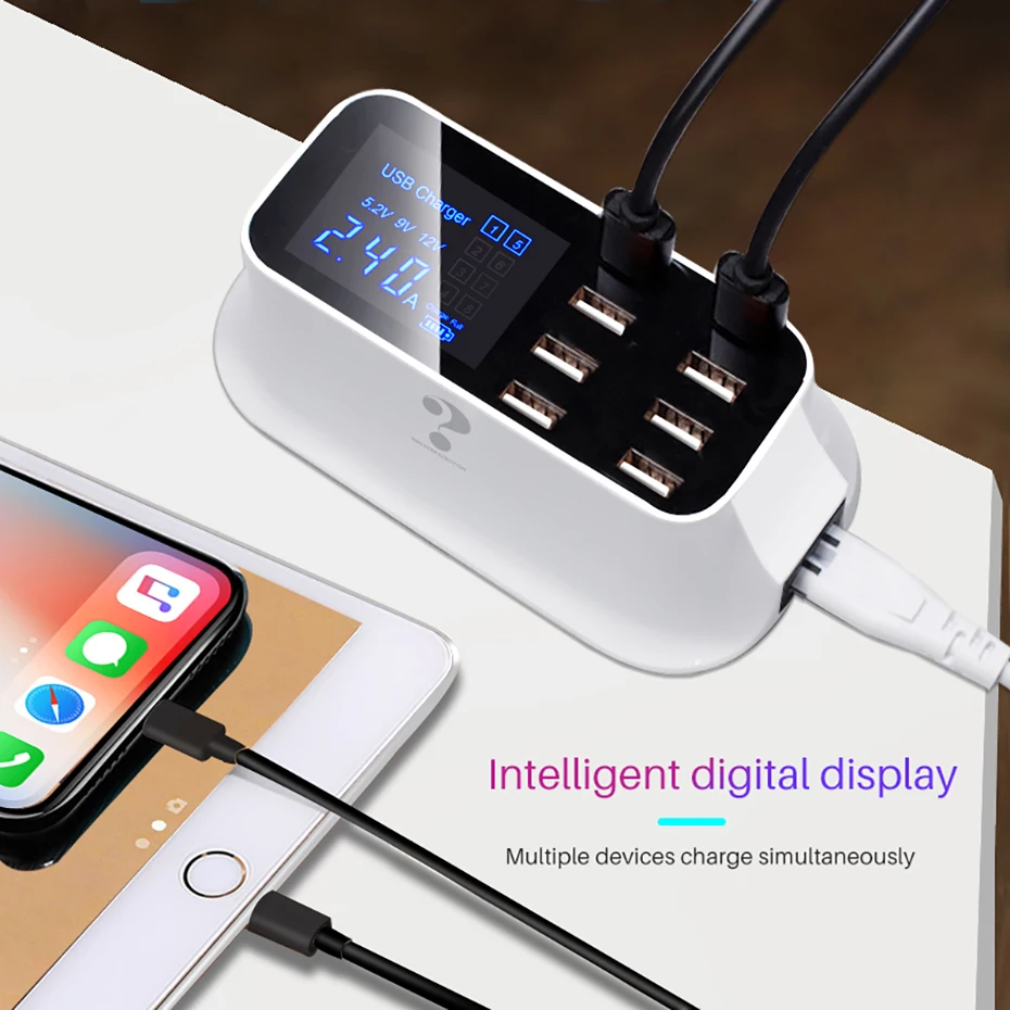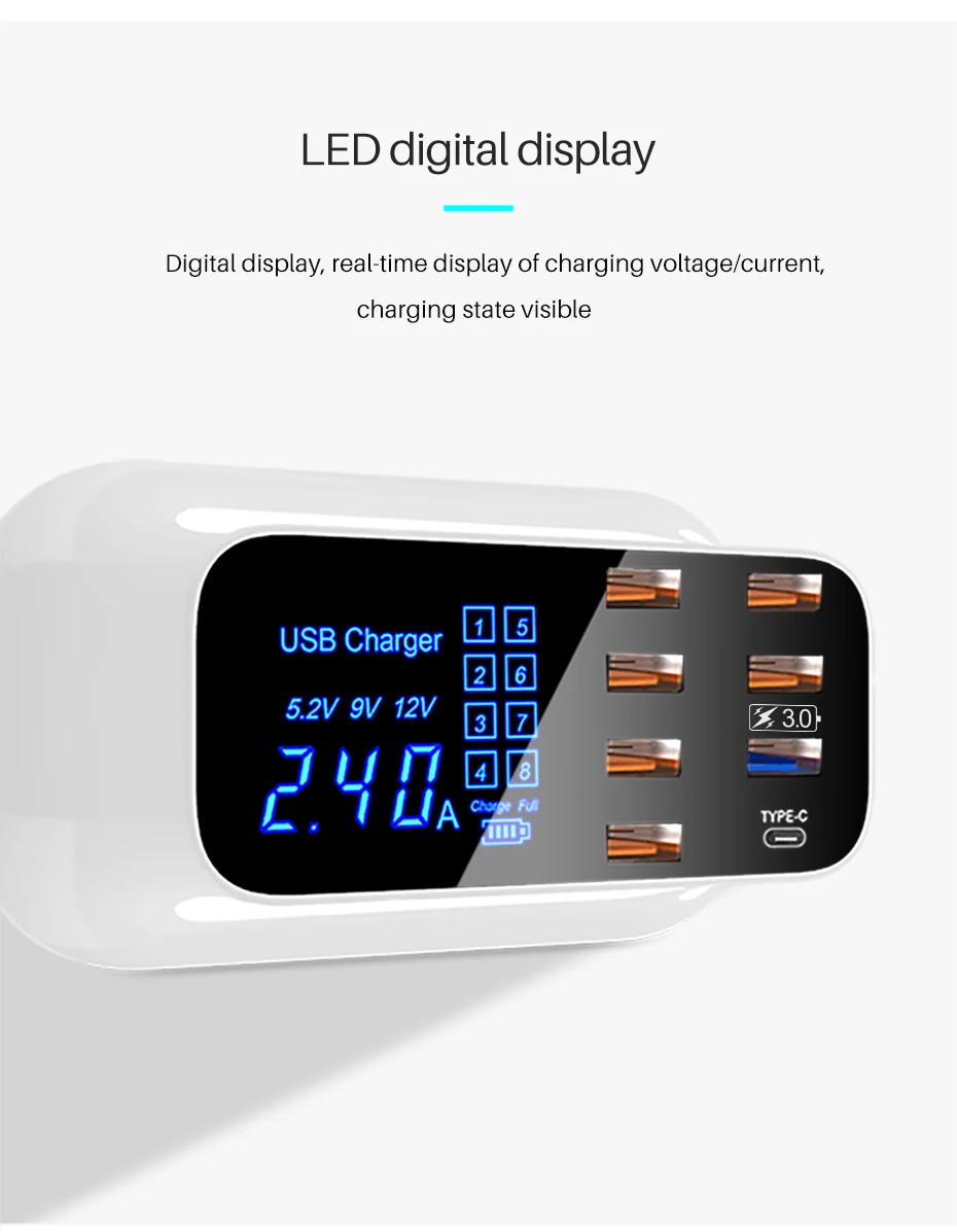 Cargador rápido usb inteligente universal para Samsung galaxy Xiaomi, adaptador de pared, estación de carga, HUB, pantalla Led, toma de corriente de escritorio