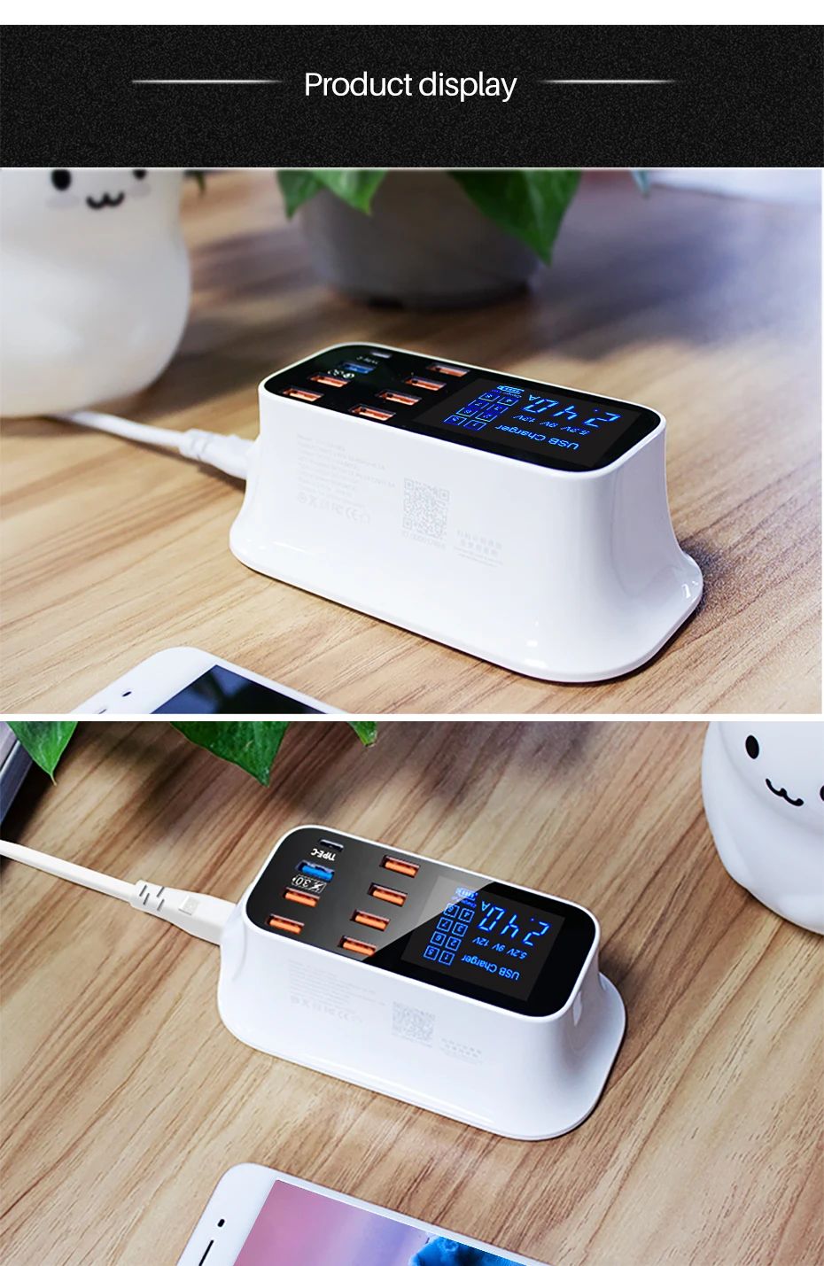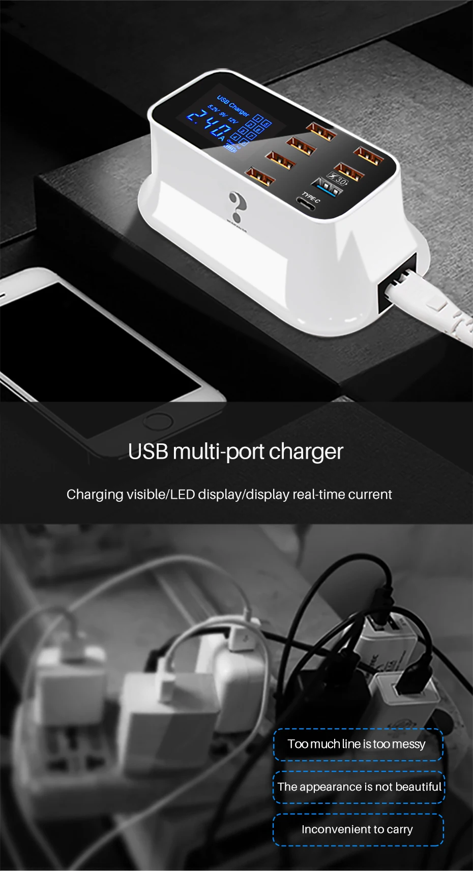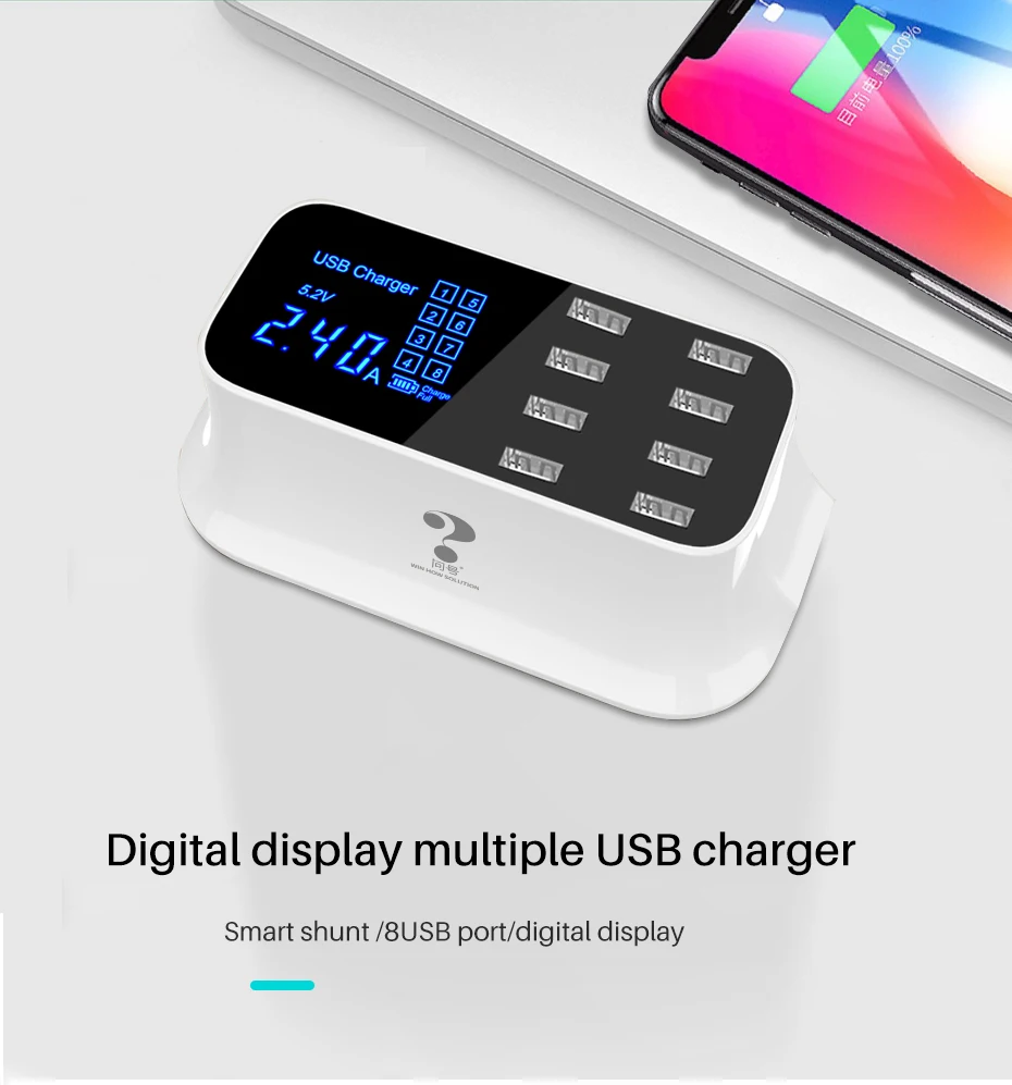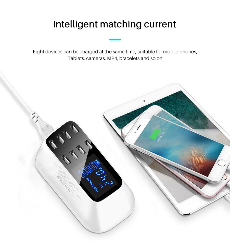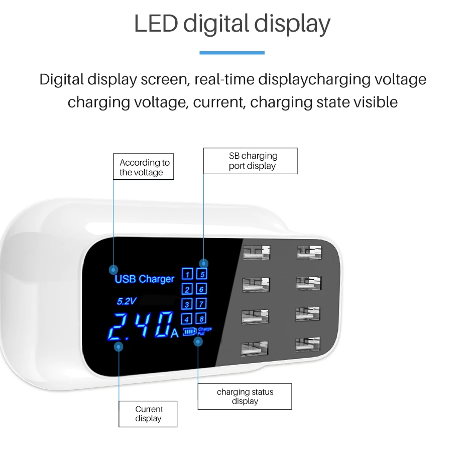 Cargador rápido usb inteligente universal para Samsung galaxy Xiaomi, adaptador de pared, estación de carga, HUB, pantalla Led, toma de corriente de escritorio