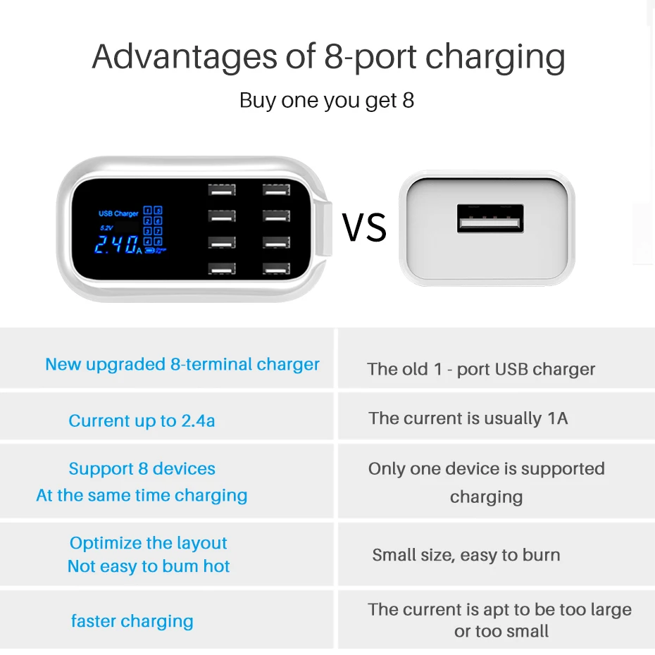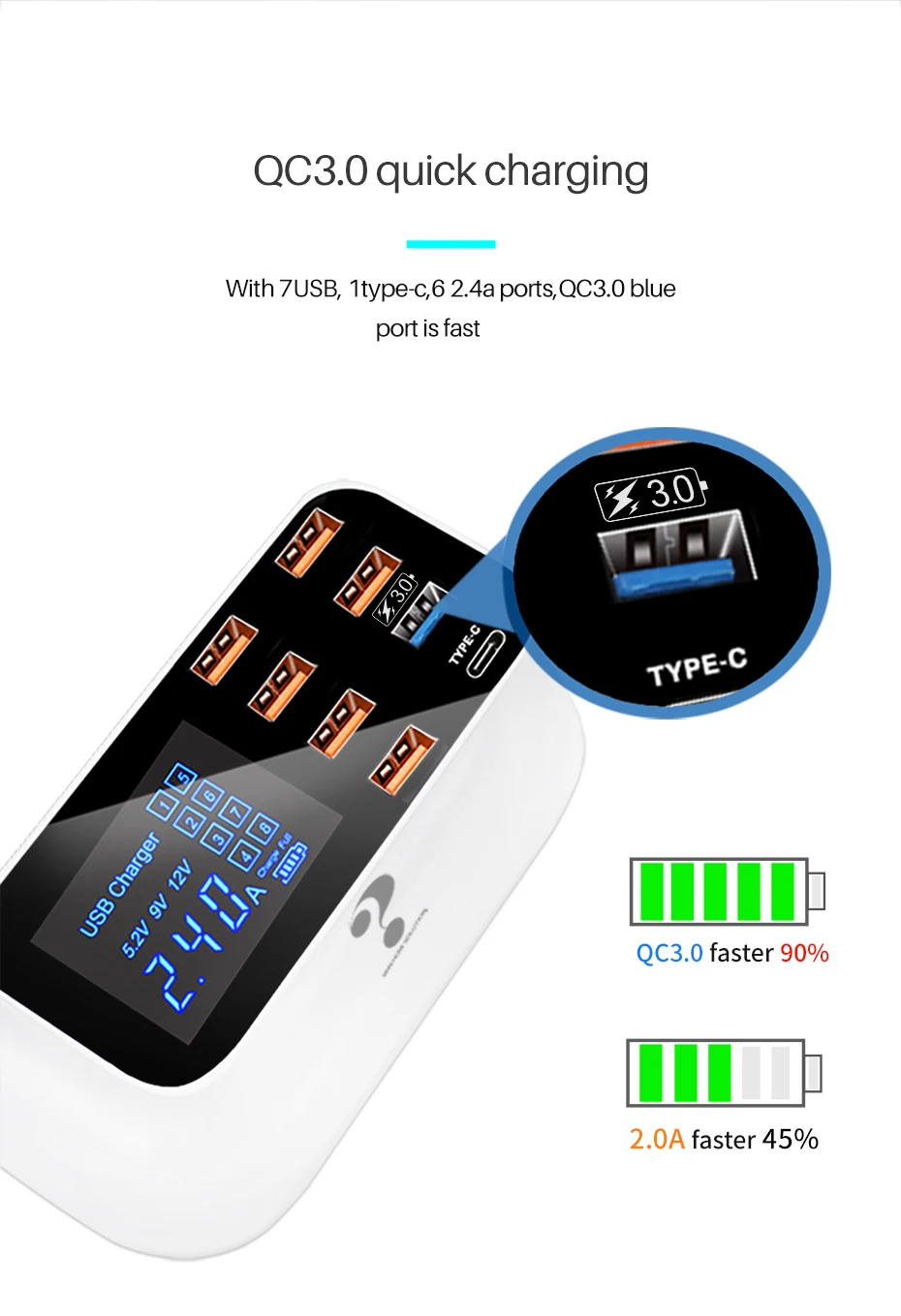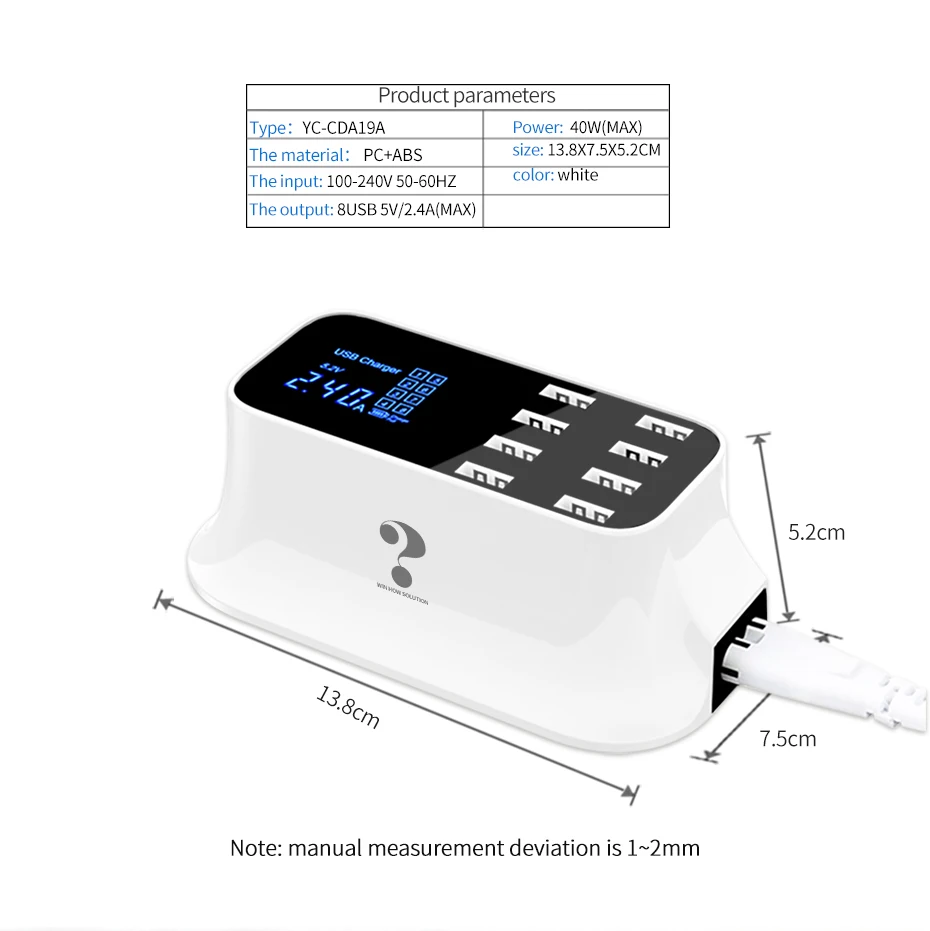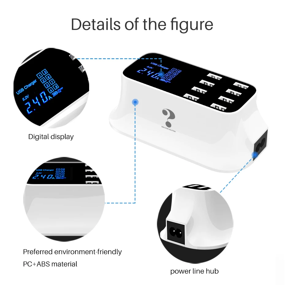 Cargador rápido usb inteligente universal para Samsung galaxy Xiaomi, adaptador de pared, estación de carga, HUB, pantalla Led, toma de corriente de escritorio