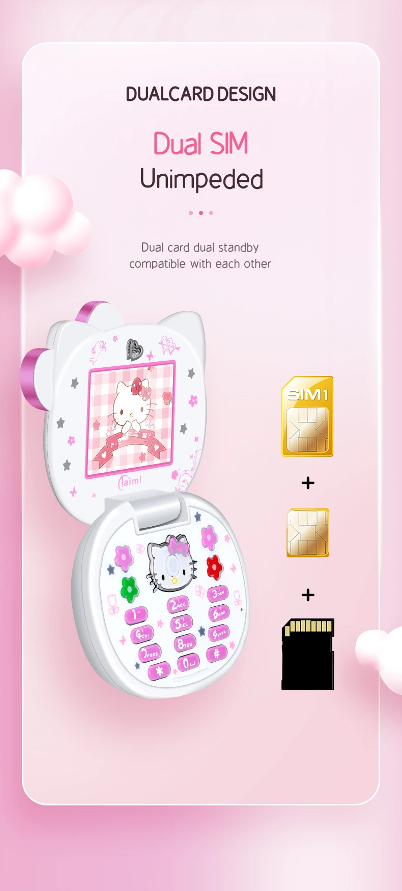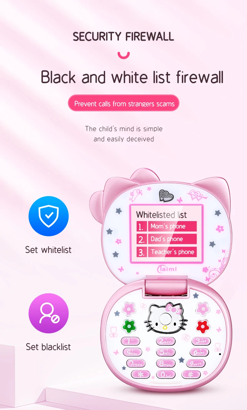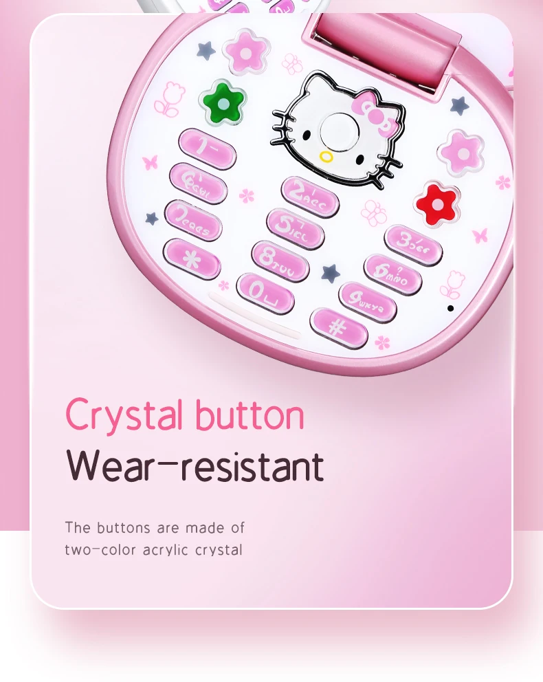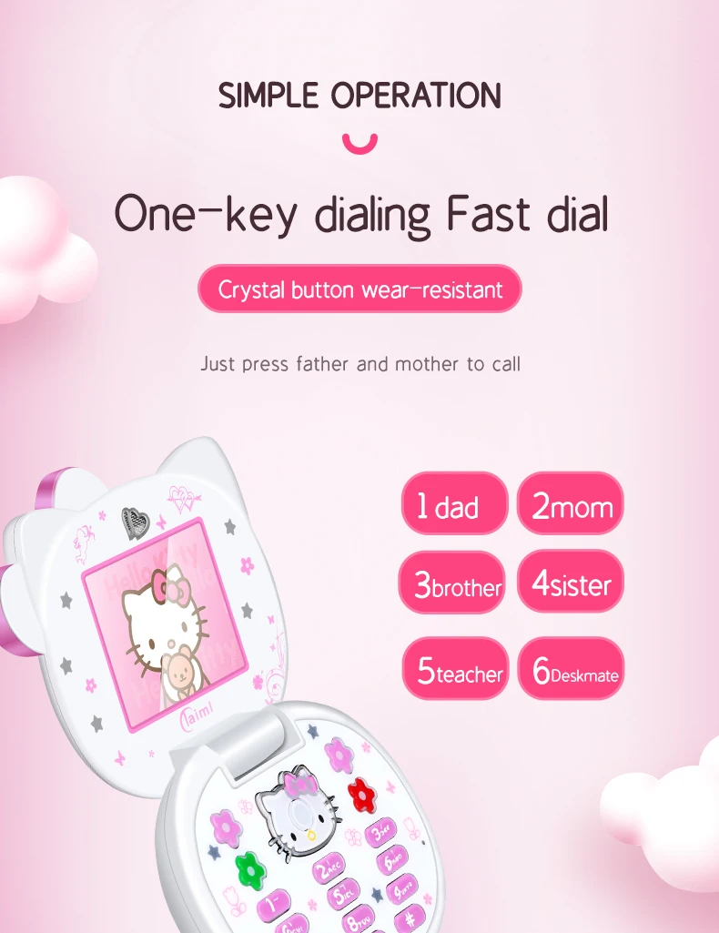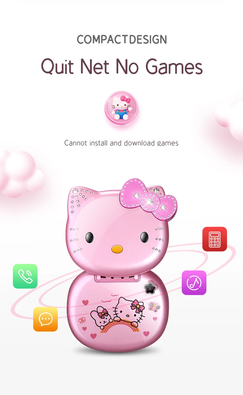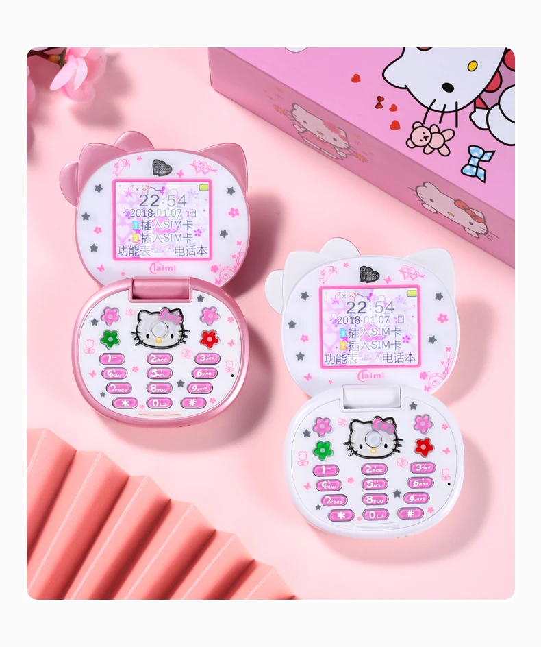 Teléfono Móvil Mini niña lindo regalo gratis bolsa de cabeza de gato cordón banda cuádruple Flip dibujos animados desbloqueado niños Dual Sim teléfono móvil