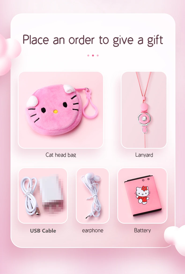 Añadir tarjeta TF 4G = 1 * Teléfono + 1 * batería + 1 * Cable USB + tarjeta de memoria 4G + 1 * bolsa de cabeza de gato + 1 * cordón