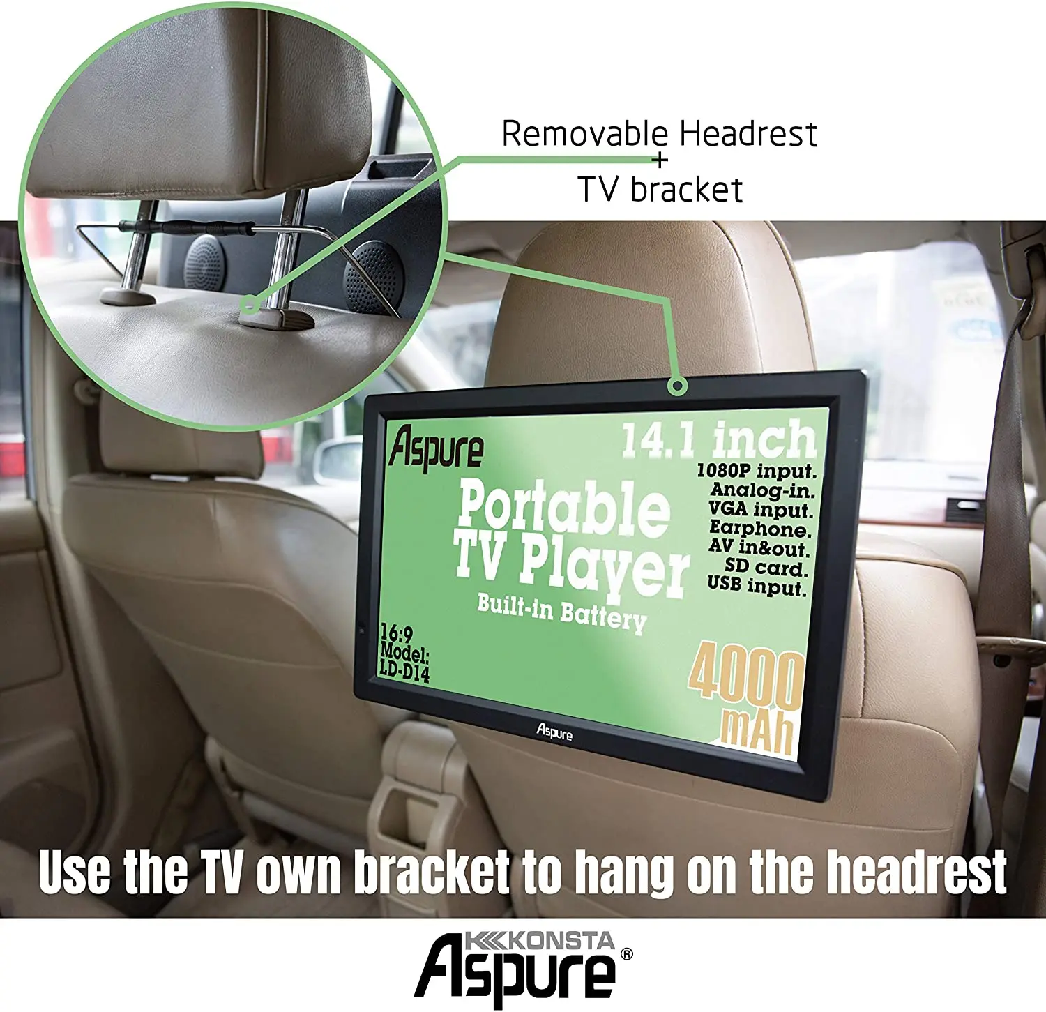 LEADSTAR 14 pulgadas portátil Digital ATSC TFT HD pantalla Freeview LED TV para coche