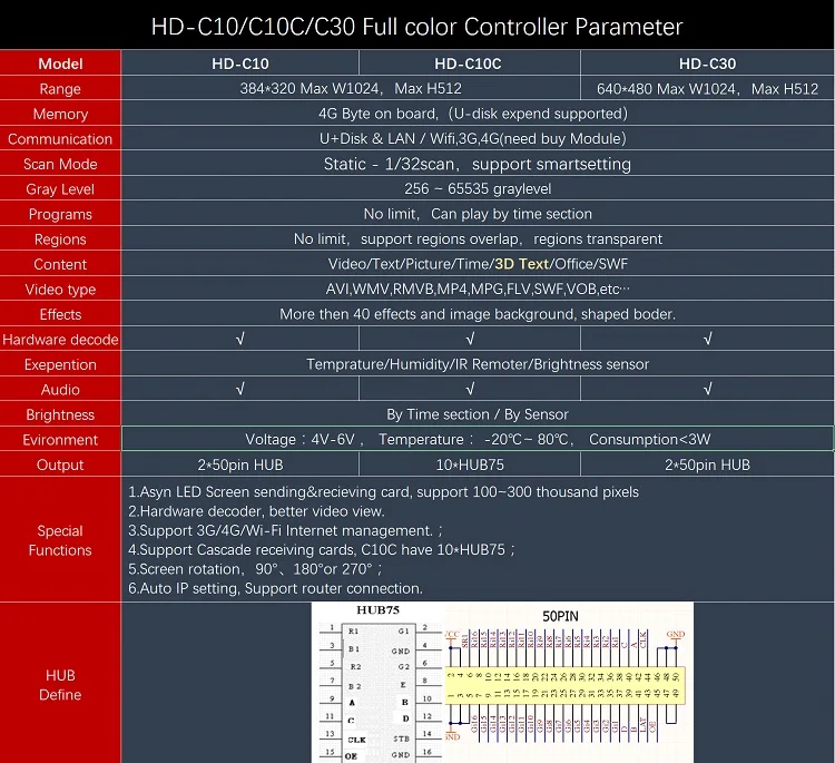 Tarjeta de control de módulo de pantalla led p10 rgb a todo color hd c10