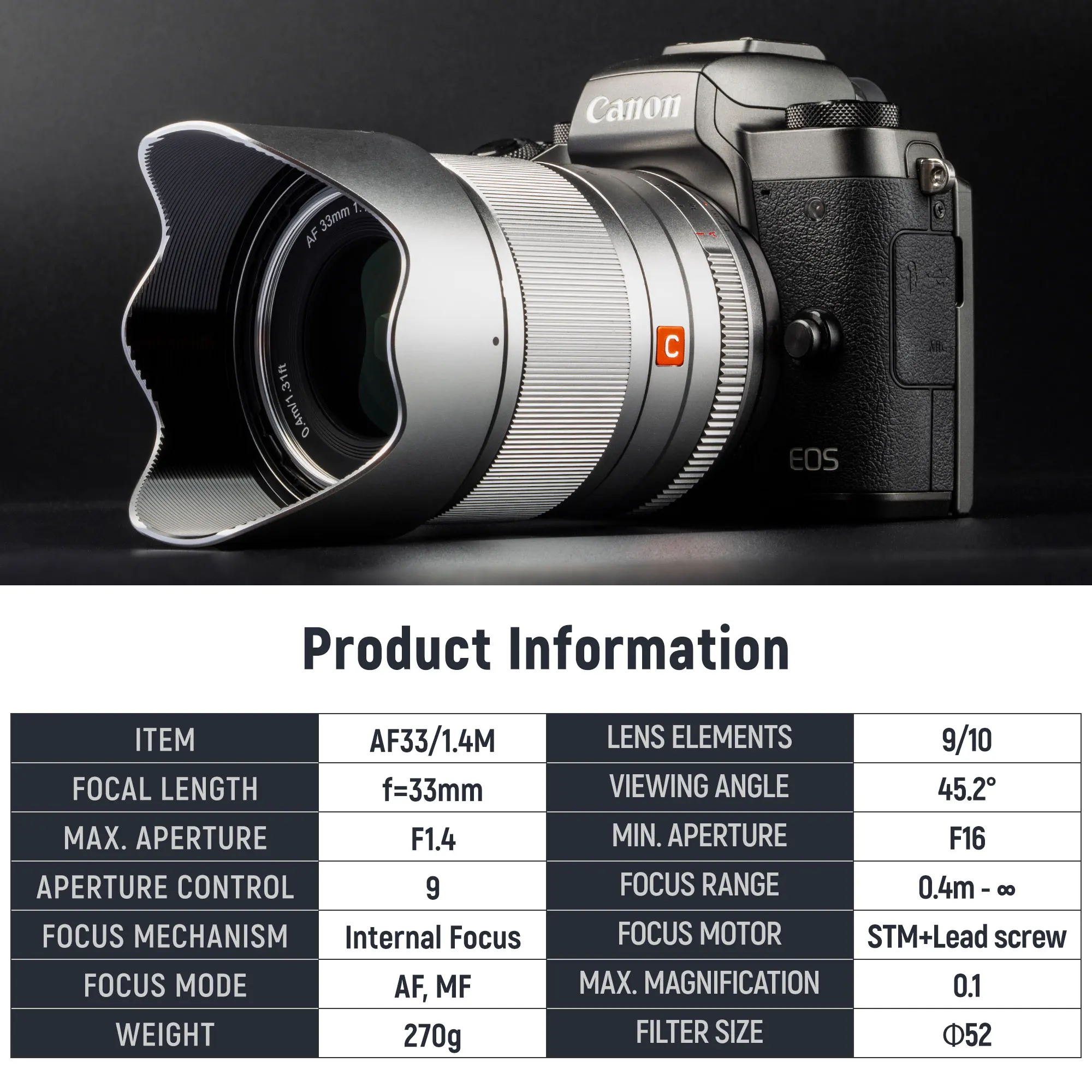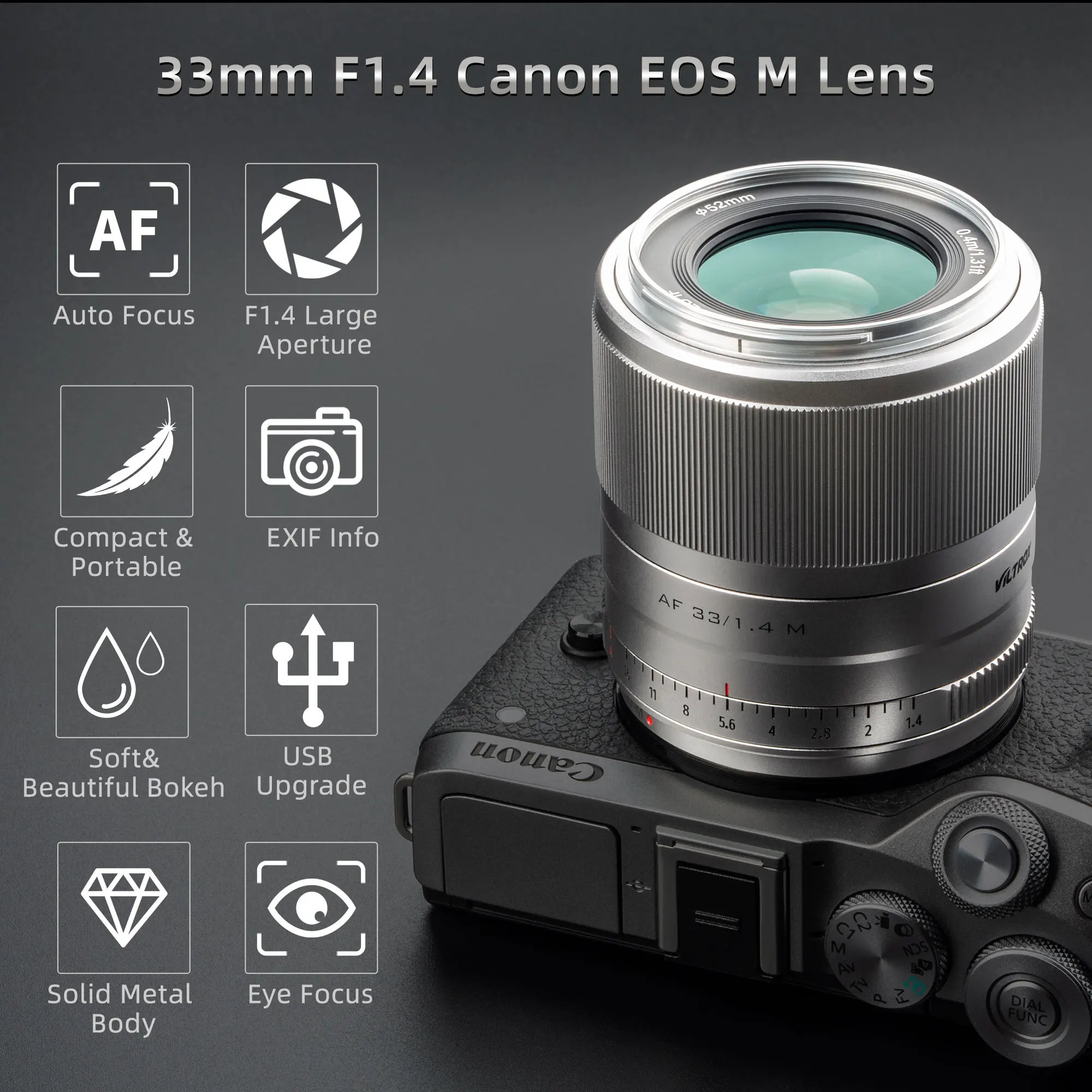VILTROX AF 33mm F1.4 STM lente de enfoque automático prime es una lente de gran apertura diseñada para la cámara Canon EOS m-mount.