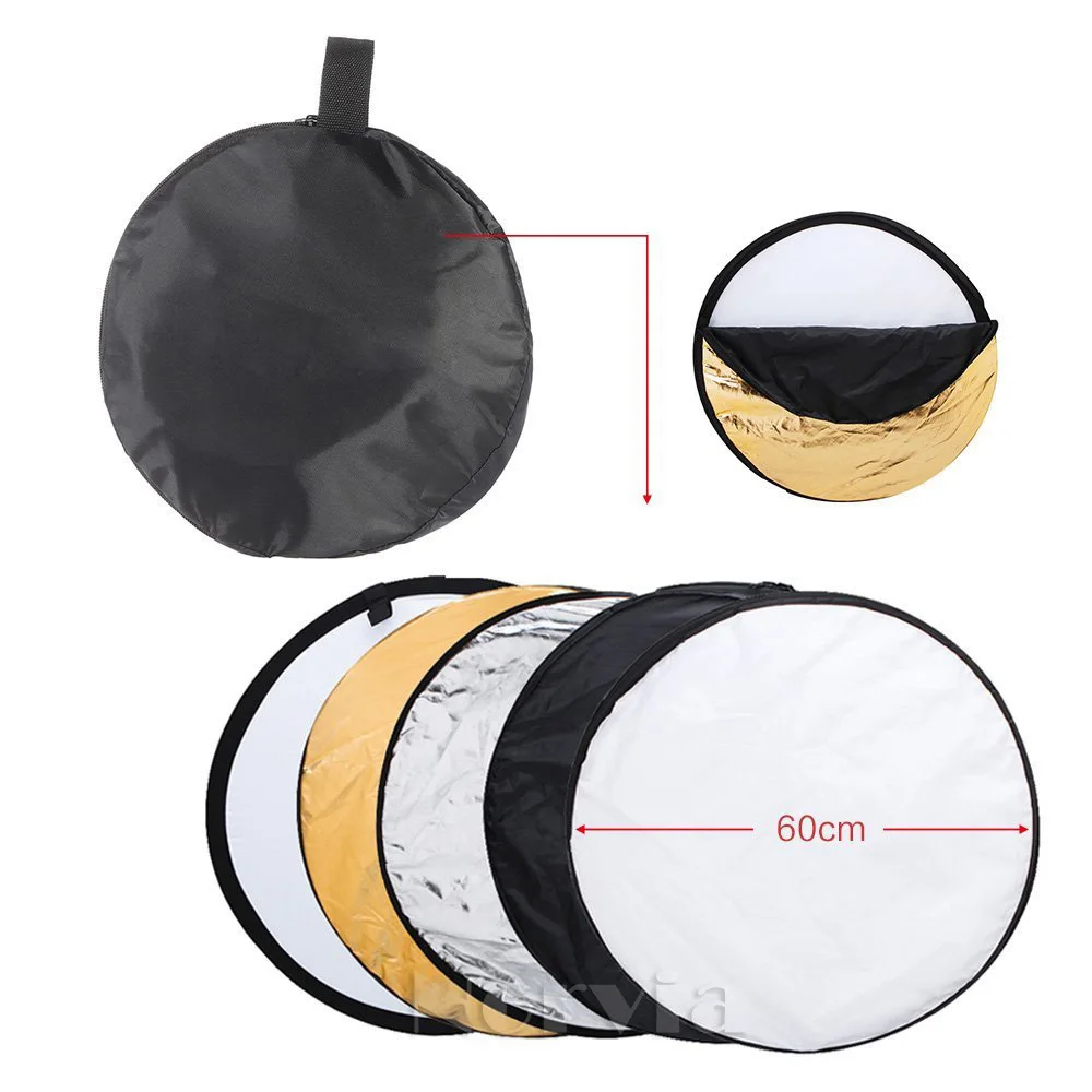 El reflector con cinco superficies reflectantes diferentes se puede utilizar para llenar, reflejar, difundir, absorber o suavizar la luz.