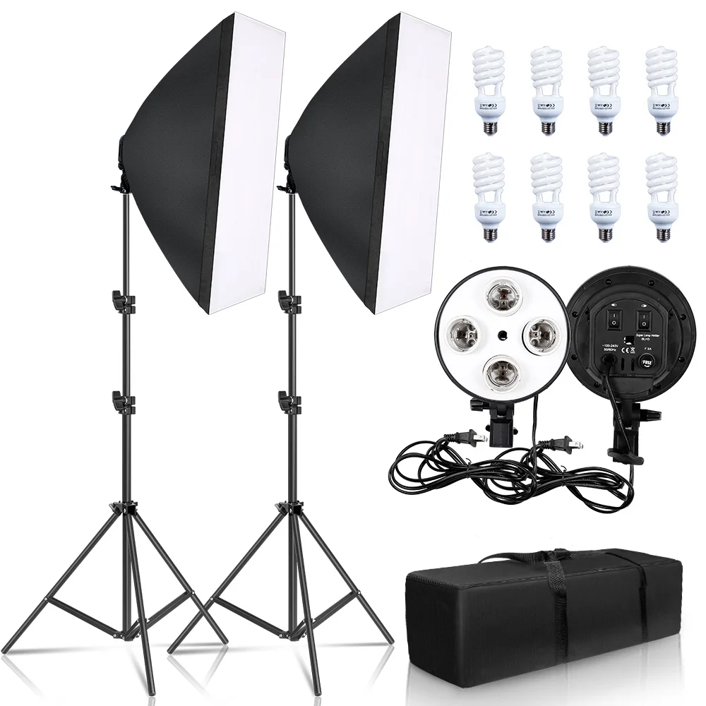 SH-Kit de iluminación para estudio fotográfico, Softbox de cuatro lámparas, equipo de Softbox de 50x70CM, Base E27