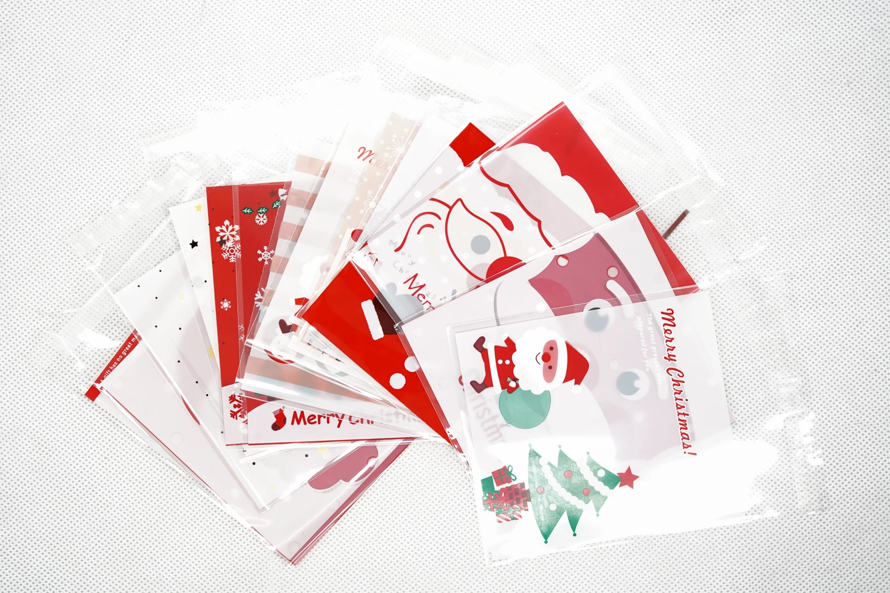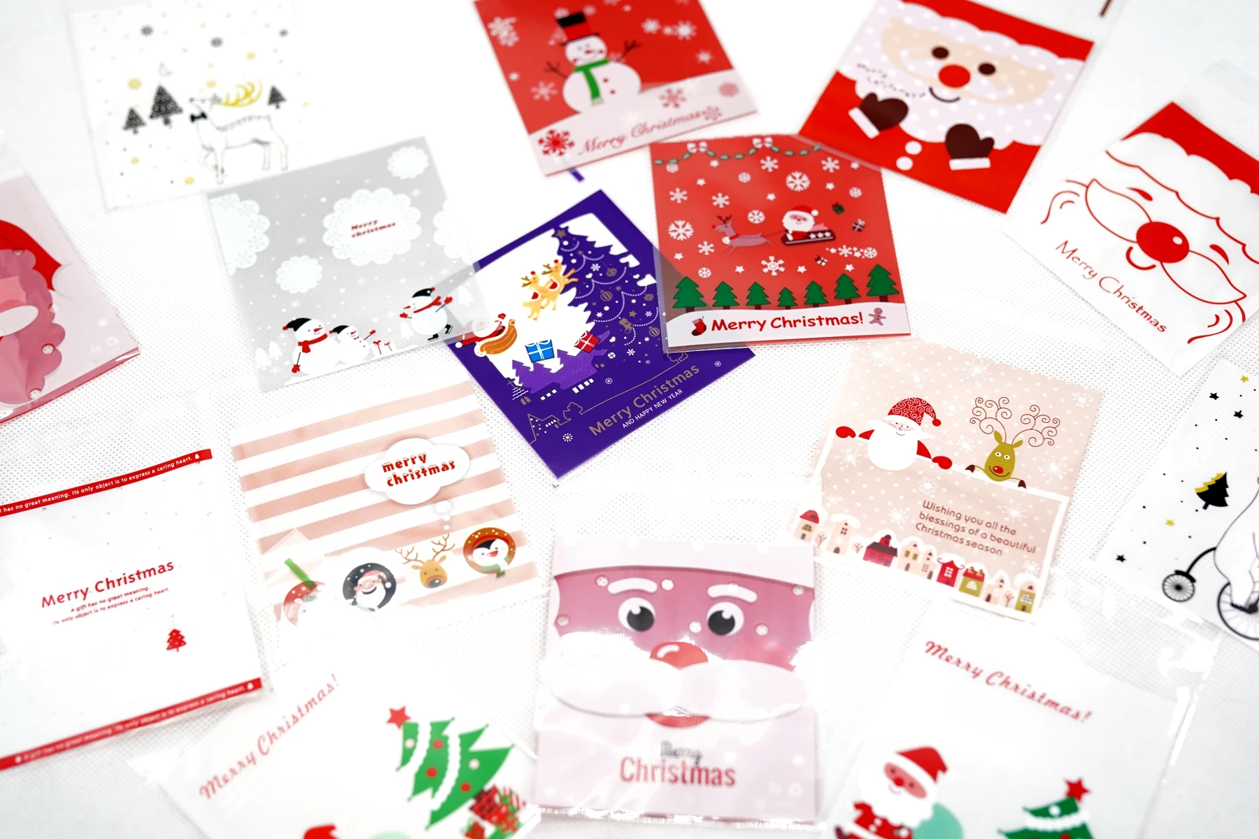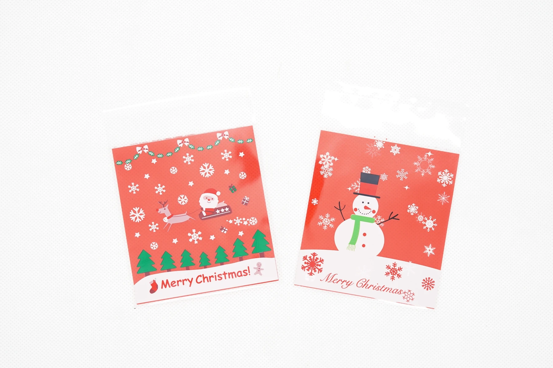 Bolsas de galletas de Feliz Navidad, bolsas de galletas de plástico con sello autoadhesivo para regalos de Navidad, decoración de fiesta de boda, 100 unids/lote