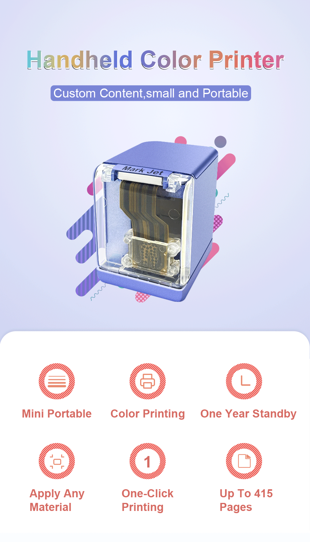 Esta increíble y ligera impresora a color es lo suficientemente portátil como para tomar la fuerza de la impresión por inyección de tinta en cualquier lugar que desee. Su inyección de tinta color personaliza objetos comunes, hace mensajes que se destacan y es la herramienta perfecta para artes y artesanías. Es perfecto para viajes de negocios, eventos, arte y diversión.