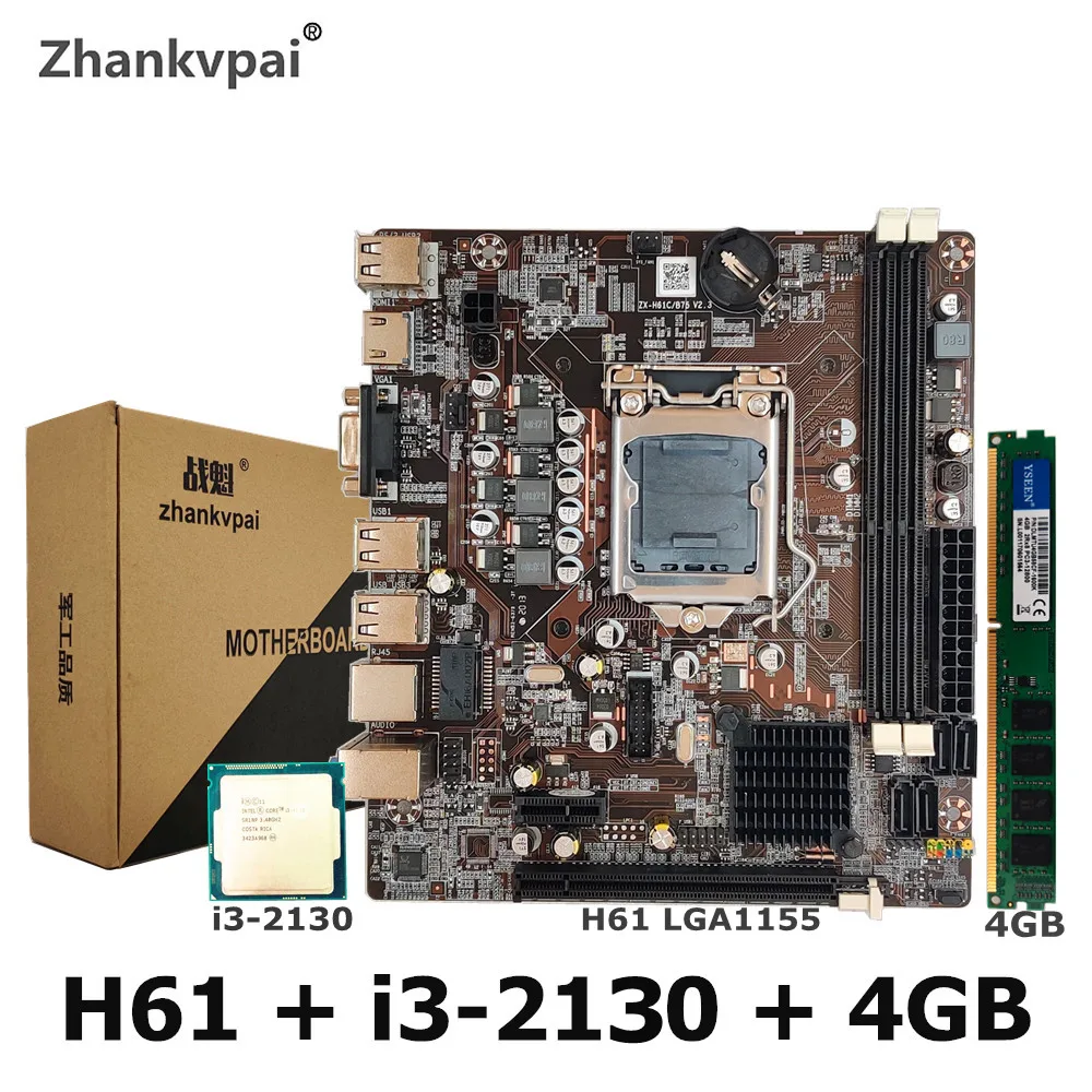 Placa base de escritorio H61 para Intel Cpu Set con Core Duo 3,4G Cpu i3-2130 + 4GB memoria Atx ordenador Mainboard Set de montaje.