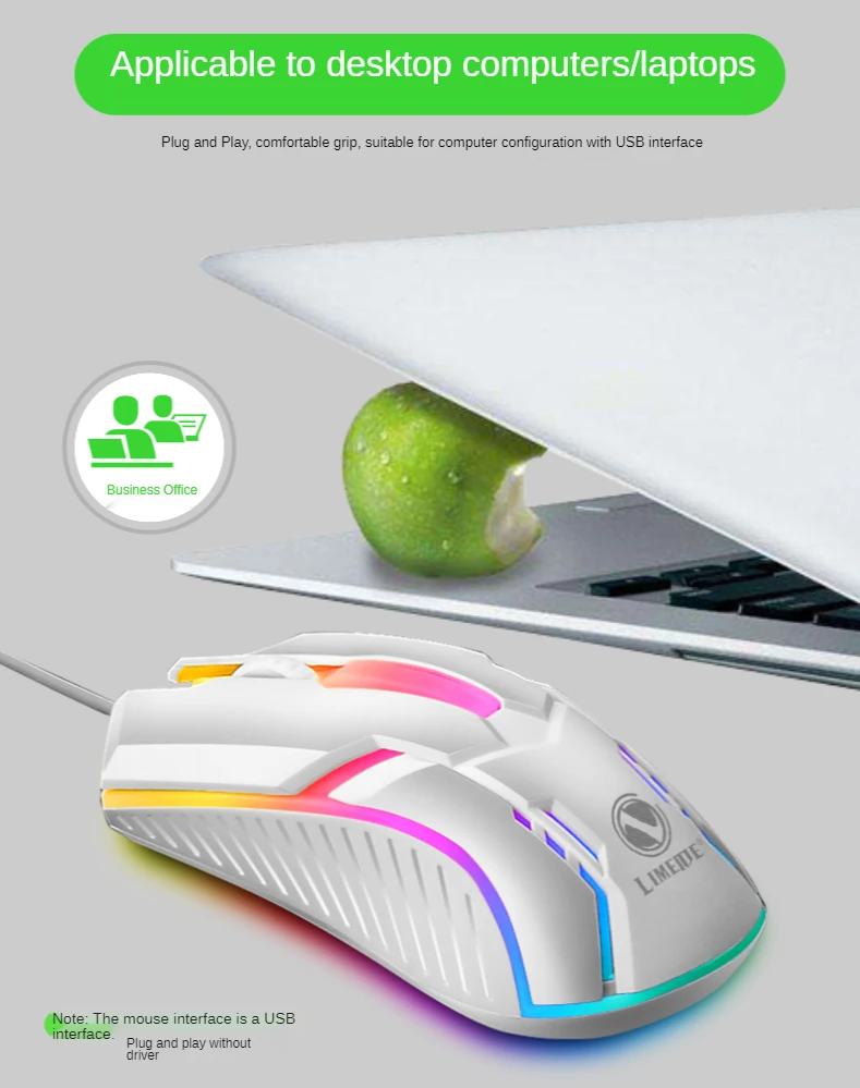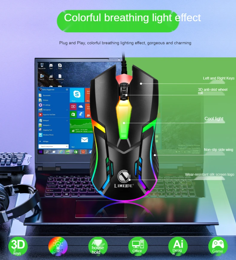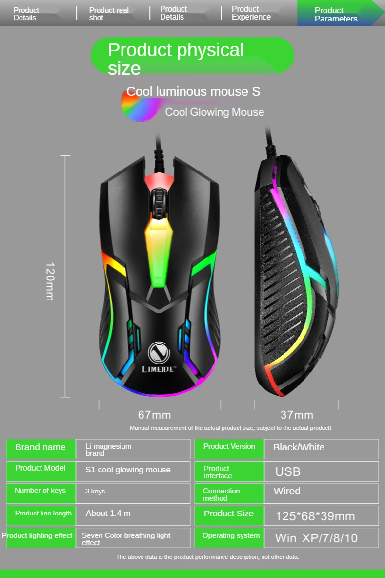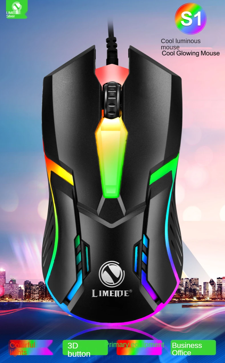 Limei-ratón con cable S1 e-sports, Mouse luminoso con cable USB, silencioso, para juegos de ordenador portátil y de escritorio