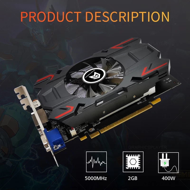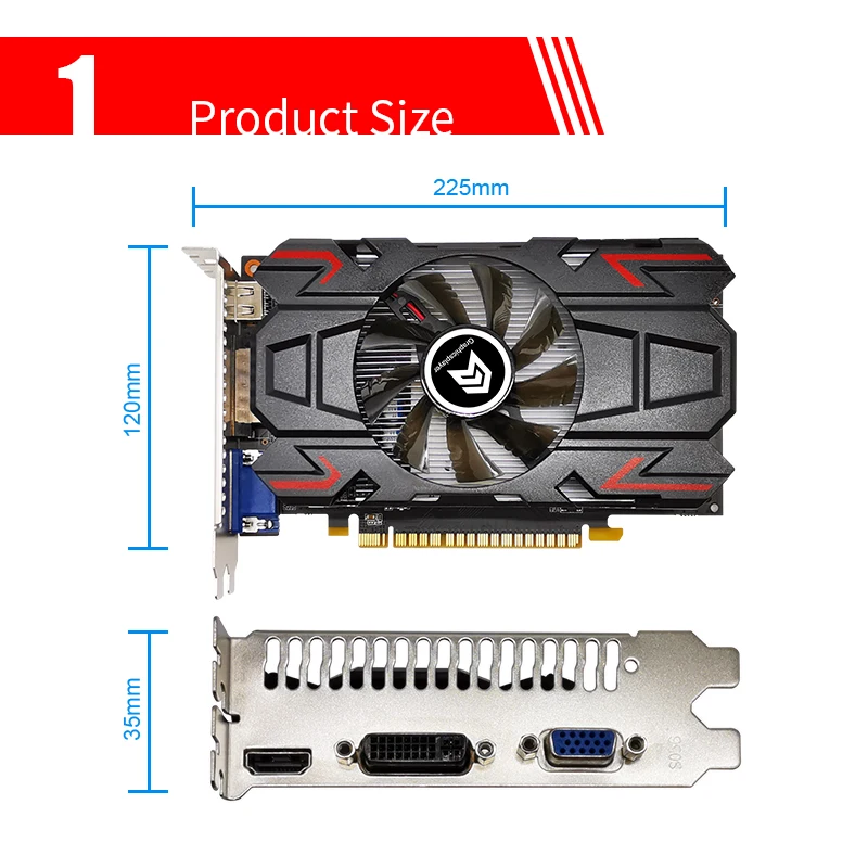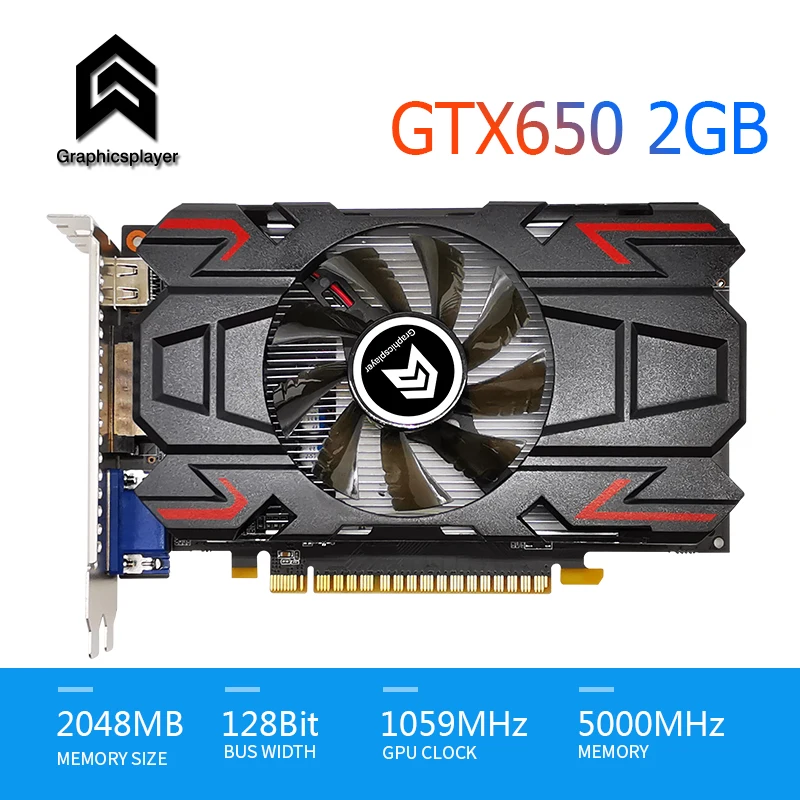 GTX650 2GBD5Brands:GraphicsplayerGPU patrones de motor procesadores de flujo: Reloj de 384 núcleos (Mhz) 1059 reloj de memoria (Mhz) 5000 especímenes de memoria estándar configuración de memoria 2048 mbmemoria interfaz GDDR5Memory ancho de interfaz de 128 bits pantalla estándar ConnectorsVGA,DVI, características hdmitérmicas y de potencia máxima de la tarjeta gráfica (W) 75W Requisito de potencia mínima del sistema (W) 400W (potencia nominal: 300W)