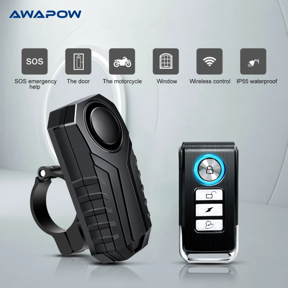 Alarma antirrobo para bicicleta 113dB sonido de vibración Control remoto alarma impermeable con Clip fijo sistema de seguridad para bicicleta de motocicleta