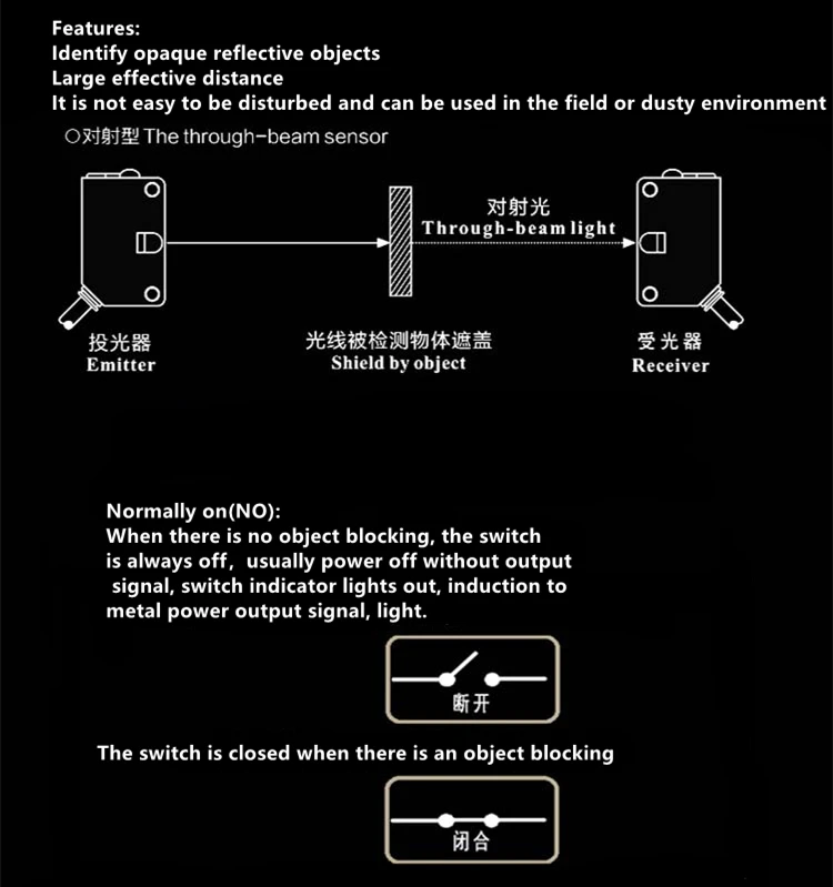 Interruptor fotoeléctrico de rayo láser, sensor infrarrojo npn, E3F-20L/20C1, 20 metros