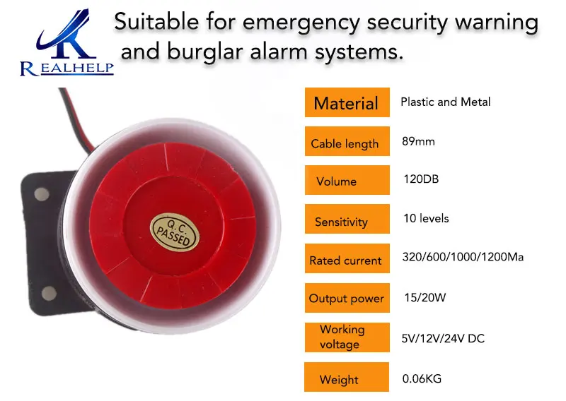 Para el sistema de alarma de sonido de seguridad del hogar DC12V 24V 5V protección para el hogar