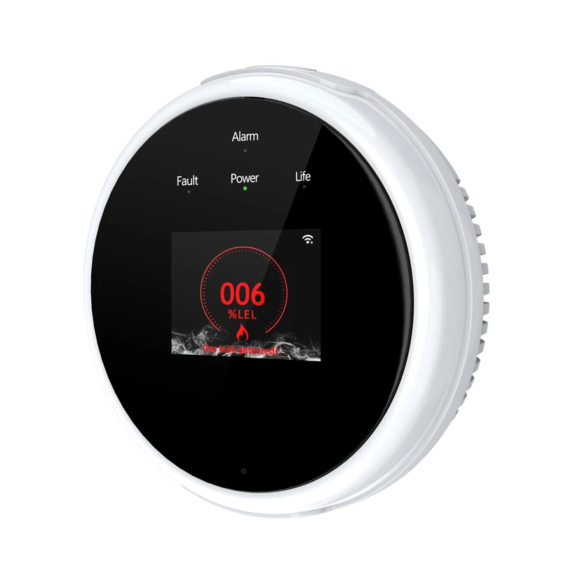 Pantalla LCD Tuya WiFi GAS LPG Sensor de fugas alarma detector de seguridad contra incendios APP Control de seguridad del hogar Control de temperatura inteligente