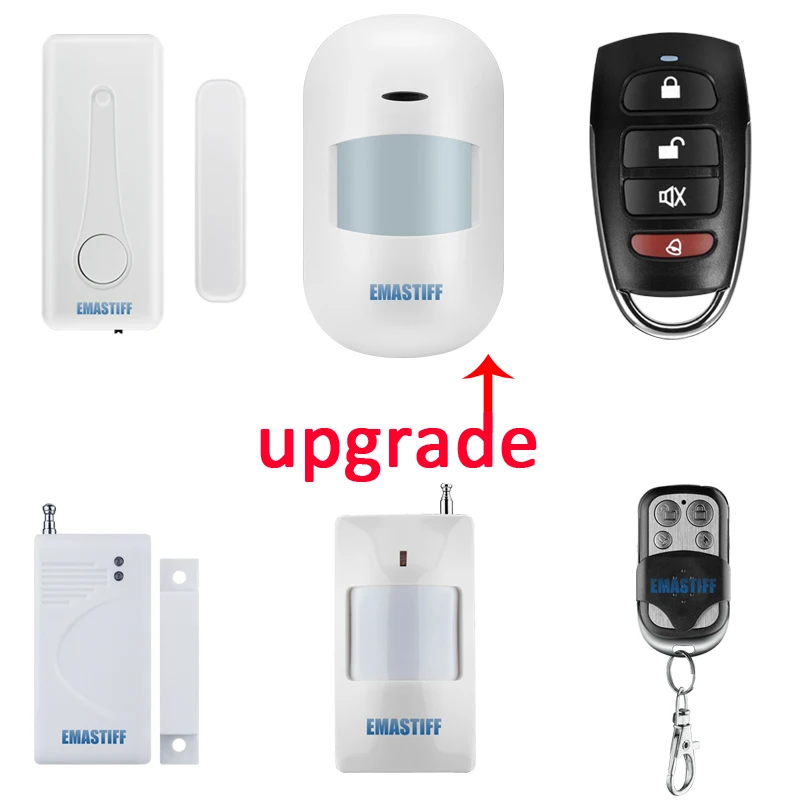 El panel de alarma marcará automáticamente o enviará SMS a su número de teléfono preestablecido cuando se active cualquier sensor de detección, la sirena sonará en el lugar al mismo tiempo. Todas estas cosas te ayudarán a tener la mejor seguridad posible y harán muy difícil que cualquiera entre en tu hogar o negocio. Además, se pueden añadir dispositivos inalámbricos opcionales para proporcionar control sobre otras funciones, como sensor de humo inalámbrico, sensor de fugas de gas inalámbrico, repetidor de señal inalámbrico,. Llave de emergencia para satisfacer su necesidad de reforzar su sistema de alarma.