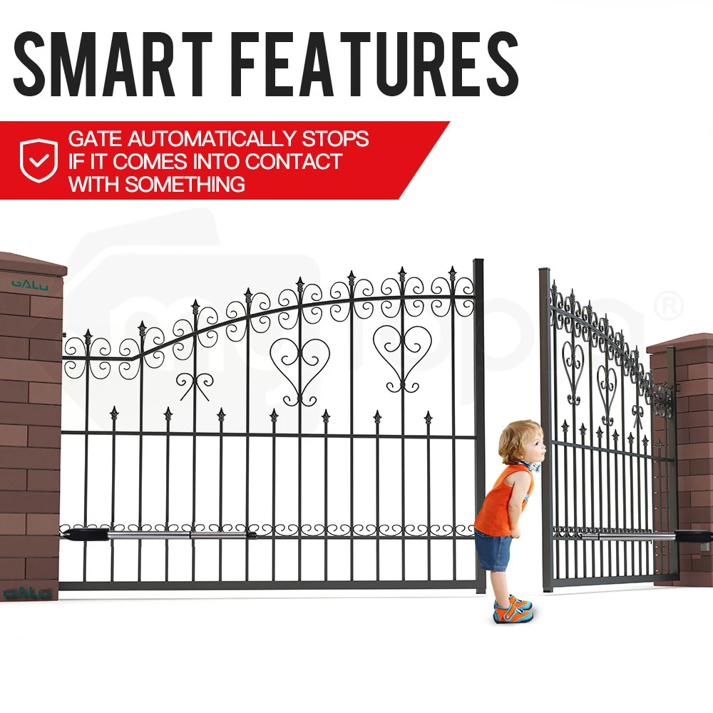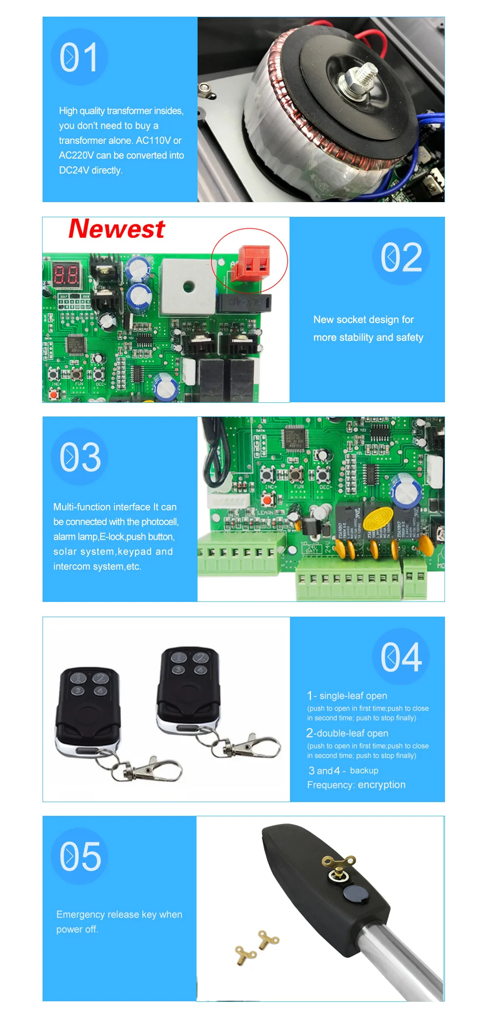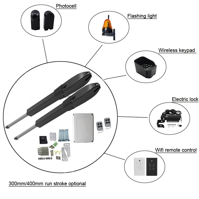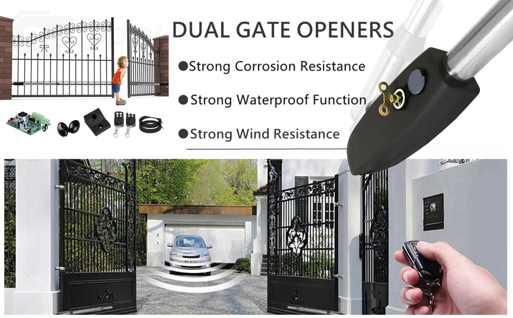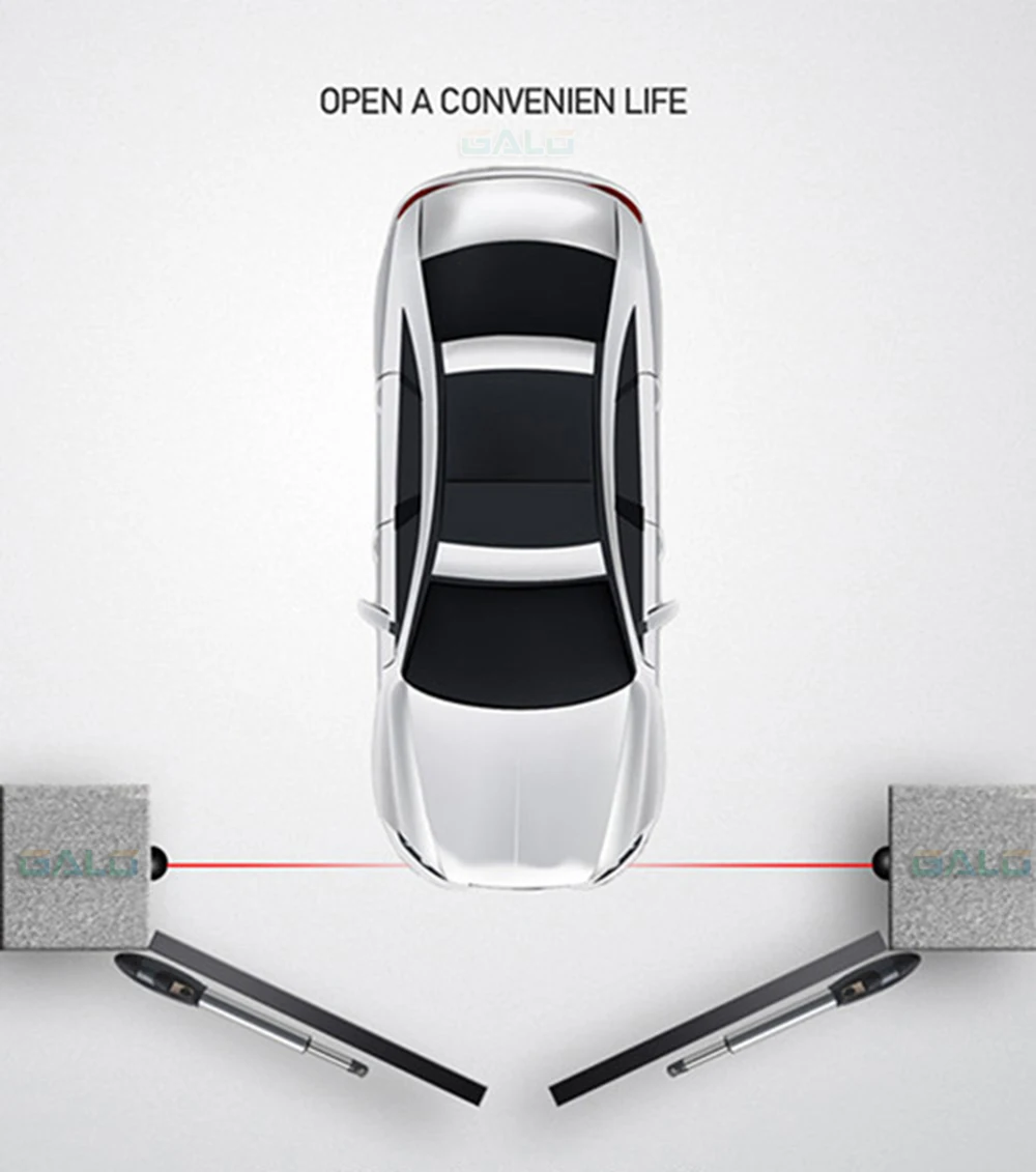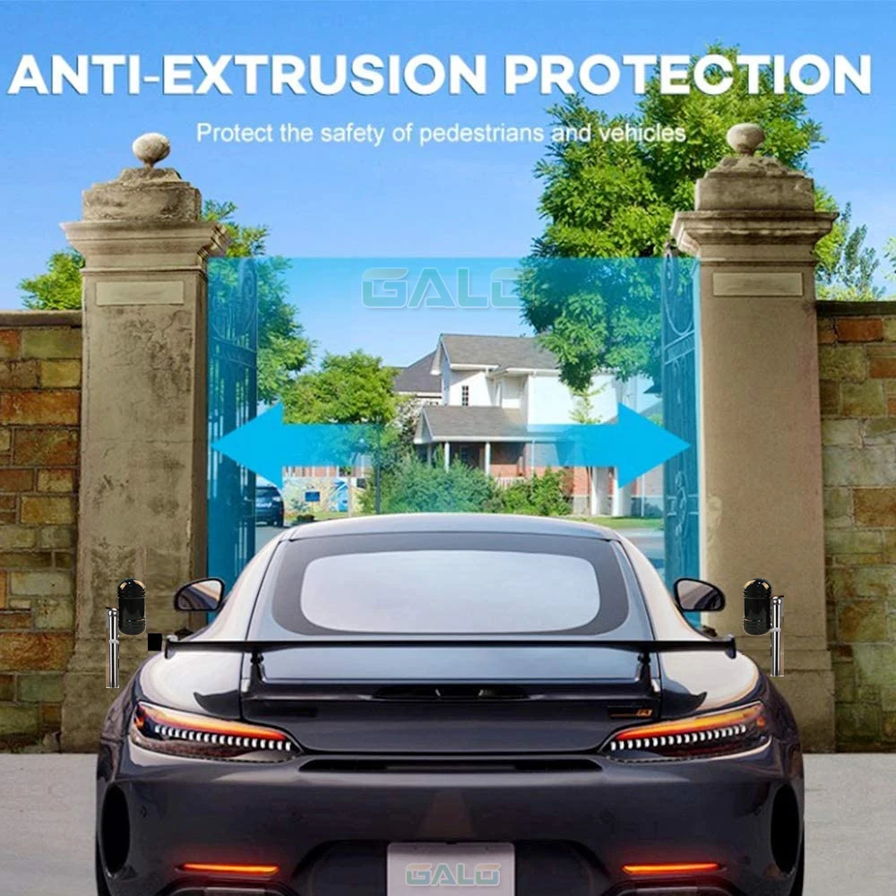 El sistema en sí tiene función de rebote de impactos. Para una protección más segura, se puede agregar un sensor de fotocélulas a algunos usuarios. Para puerta exterior. Cuando la puerta se cierre, corte IR o cuando el niño pase por la puerta de cierre, la puerta se abrirá.