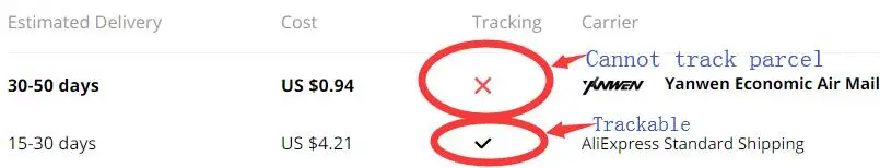 Nota: Si elige la muestra de seguimiento”× “Lo que significa que la información de seguimiento no puede rastrear,