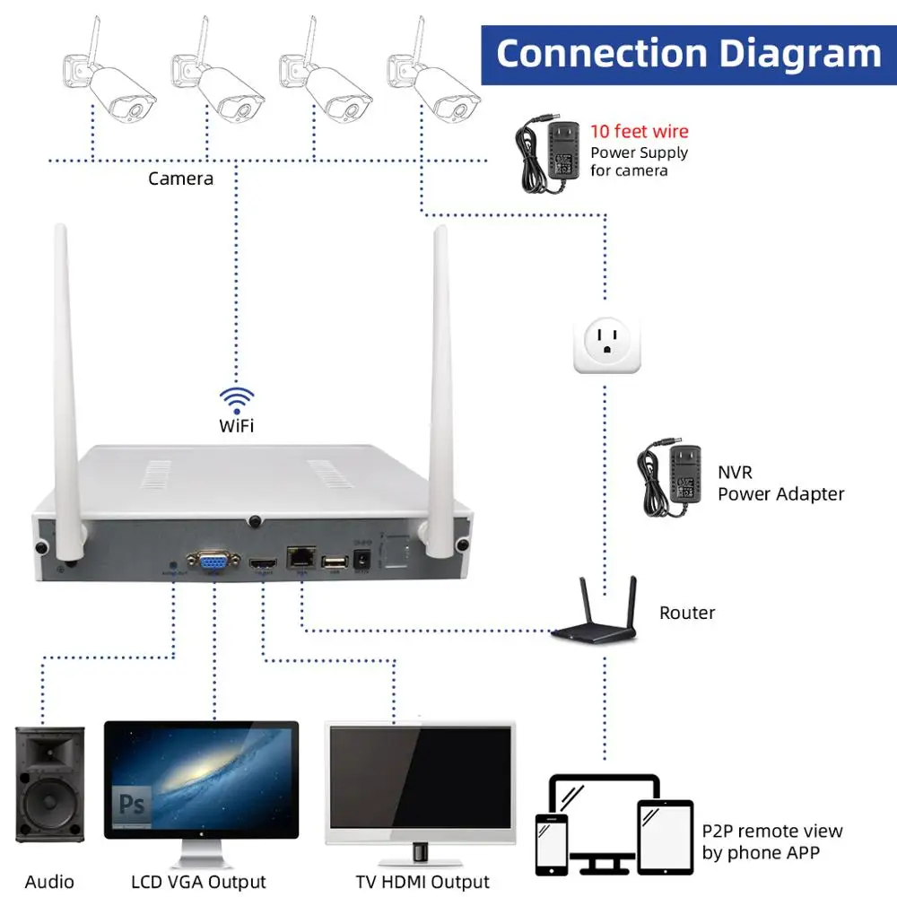 8 canales NVR + 4 cámaras