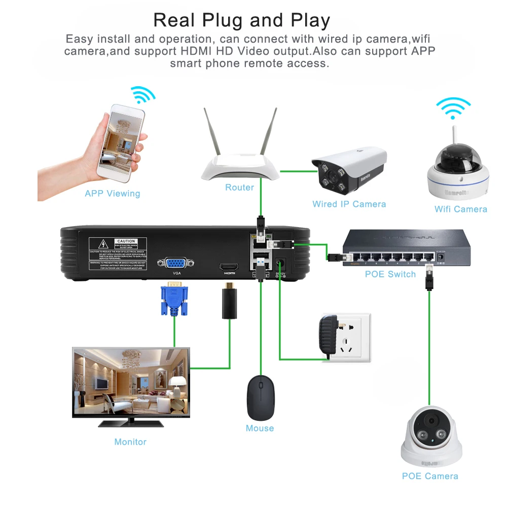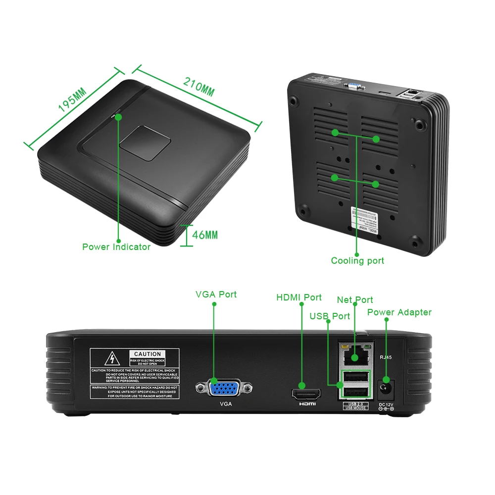 Compatible con 1 * HDD( 8TB), con 2 * USB2.0 para copia de seguridad, grabación, operación de actualización.