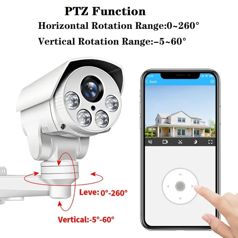 Panorámica: 0 ° ~ 260 °, inclinación:-5 ° ~ 60 ° |