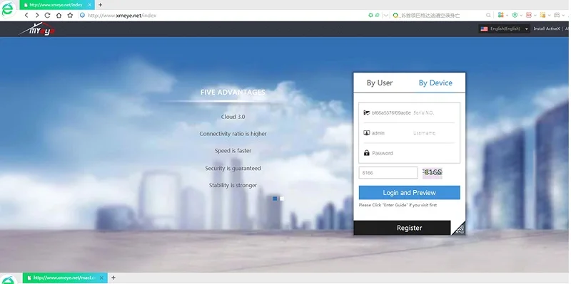 Después de contactar con internet local con éxito, puedes usar otro PC en cualquier lugar para controlar la Cámara, solo tienes que usar el número de serie de la cámara.