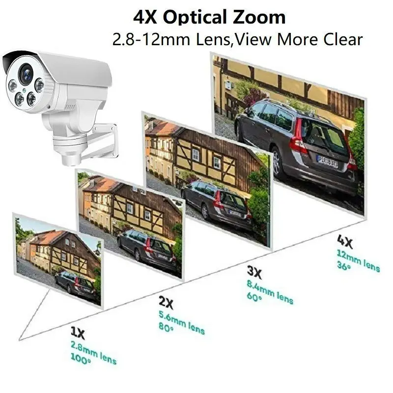 Zoom óptico 4X lente 2,8-12mm |