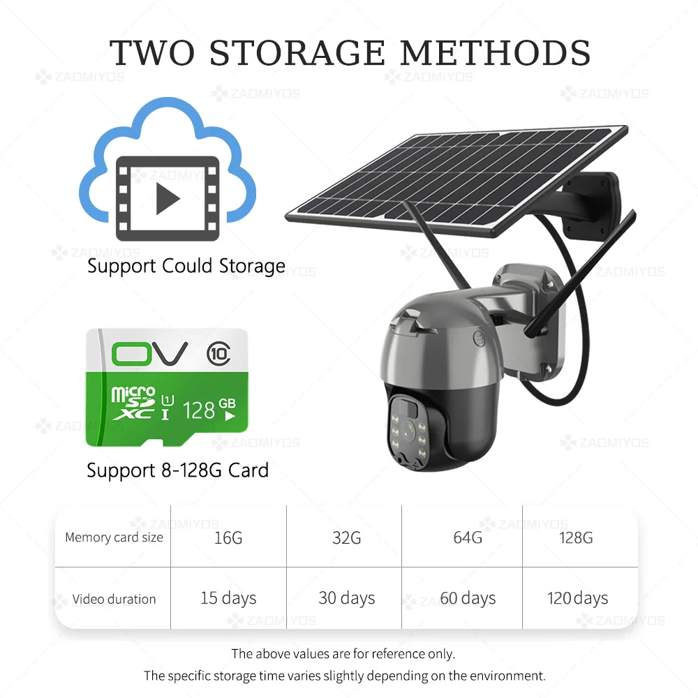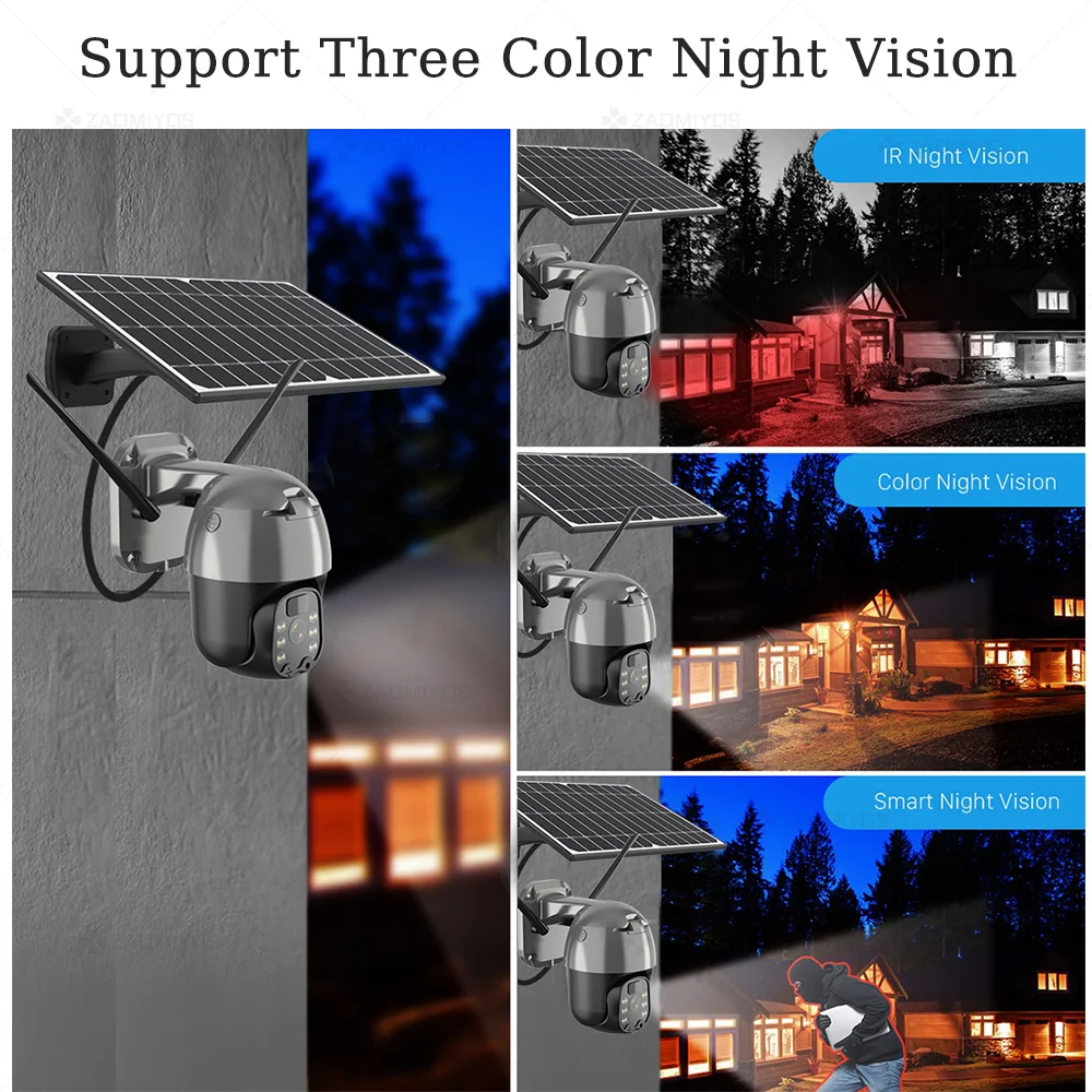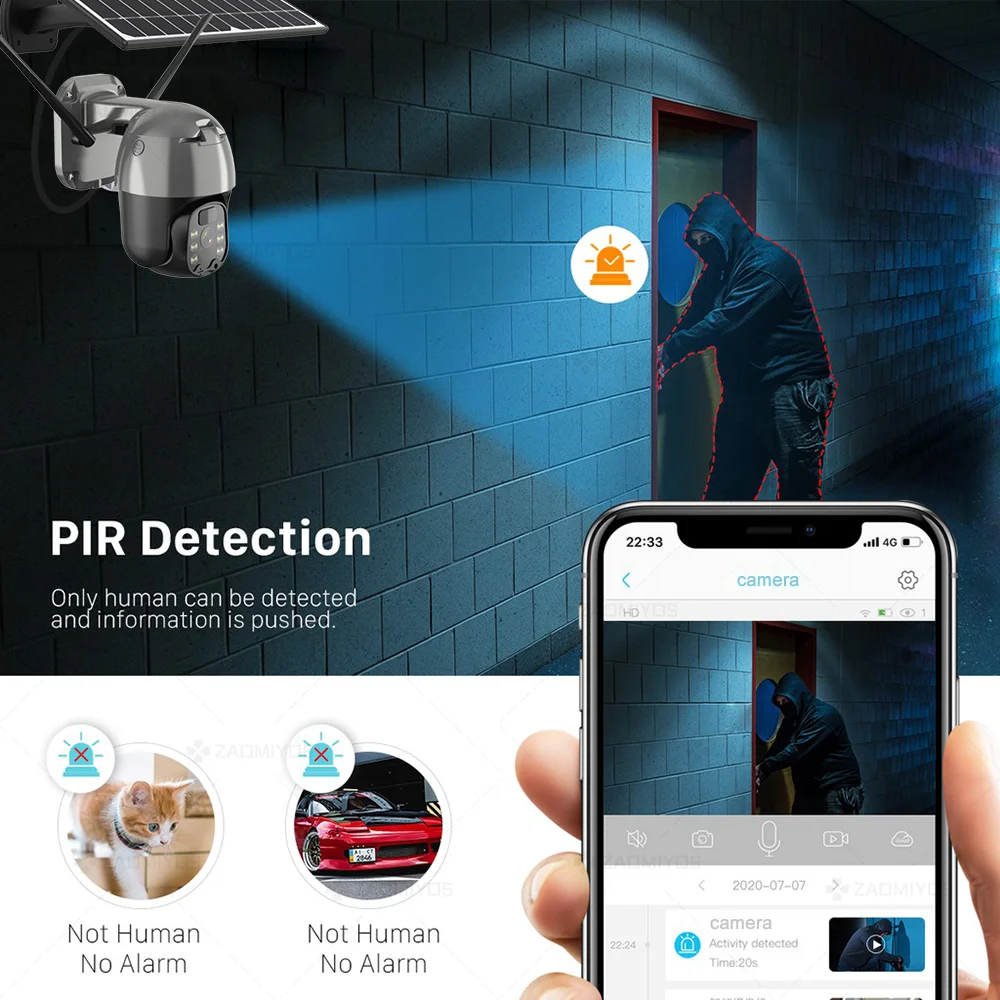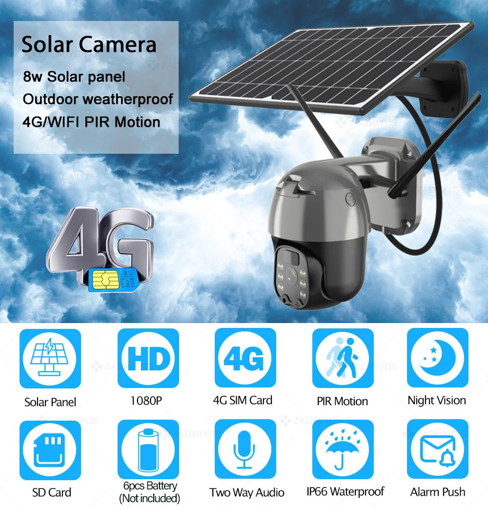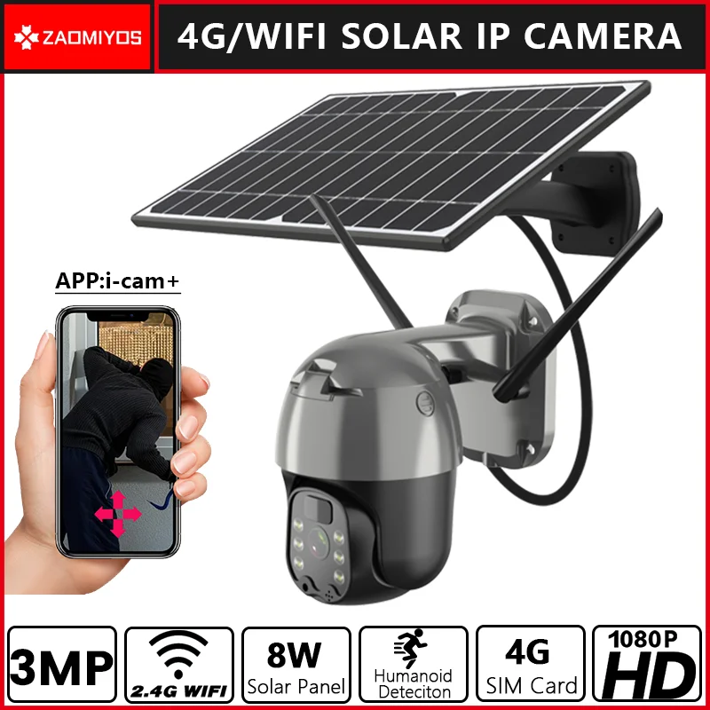 ZAOMIYOS-cámara inalámbrica PTZ 4G LTE FDD GSM con batería de Recarga Solar, videovigilancia de seguridad CCTV para exteriores 1080PHD 3MP, Wifi, IP